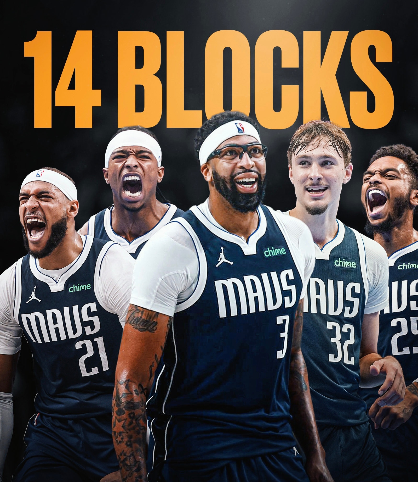 独行侠全队今天送出14次封盖,为本赛季联盟球队新高 安东尼戴维斯