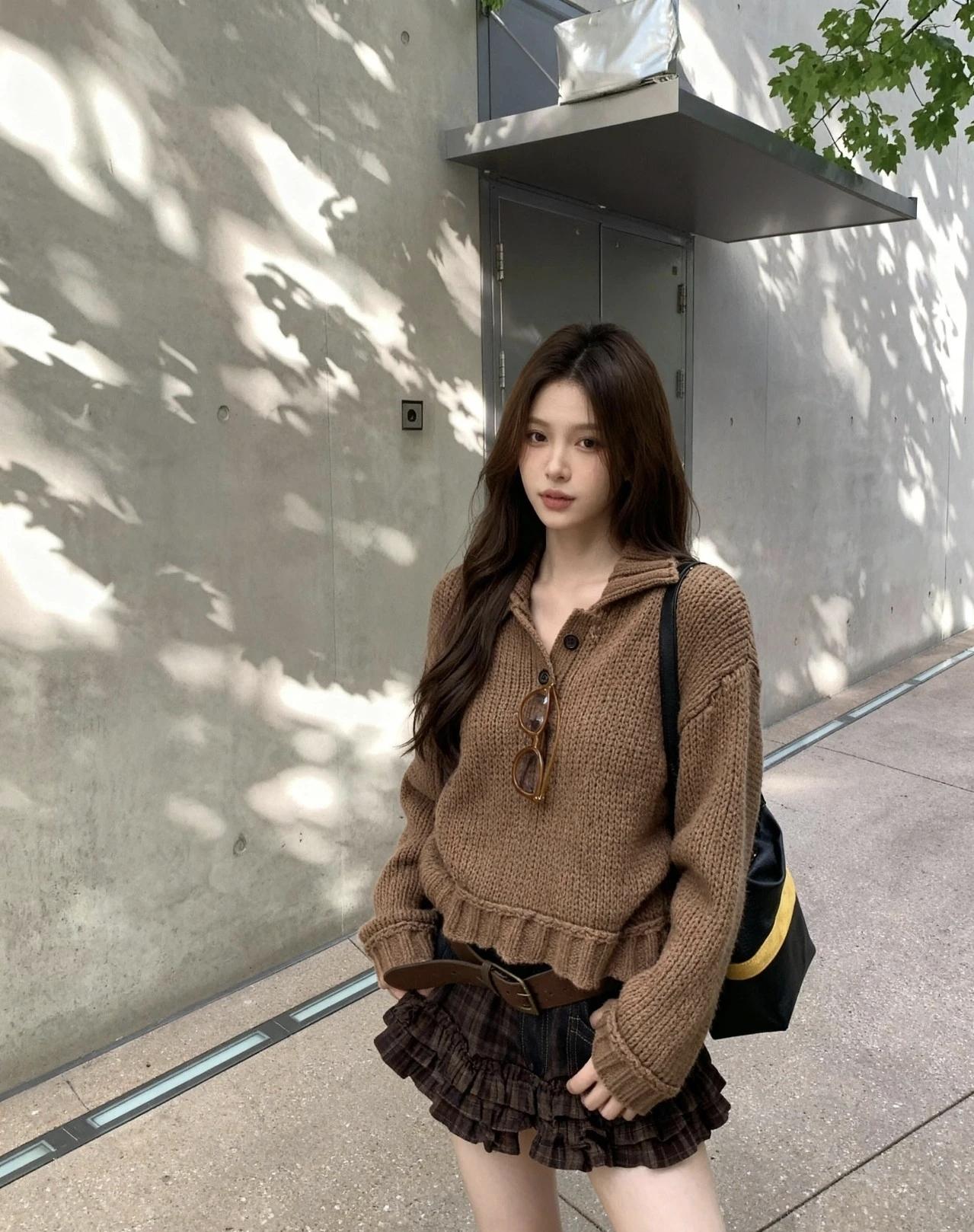 浅驼色针织搭层层纱裙,是藏在干练职场里的软萌小心思🐻
