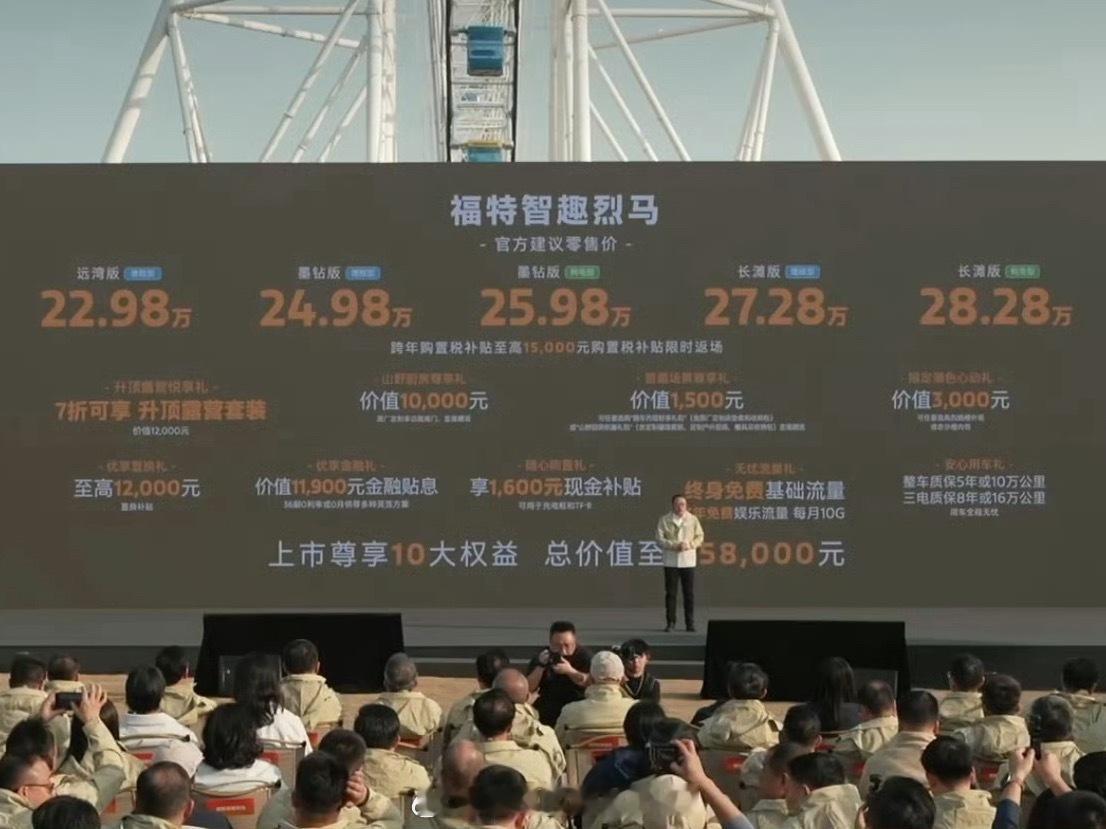 福特智趣烈马上市,车长超5米/配激光雷达售价22.98-28.28万元纯电/增程