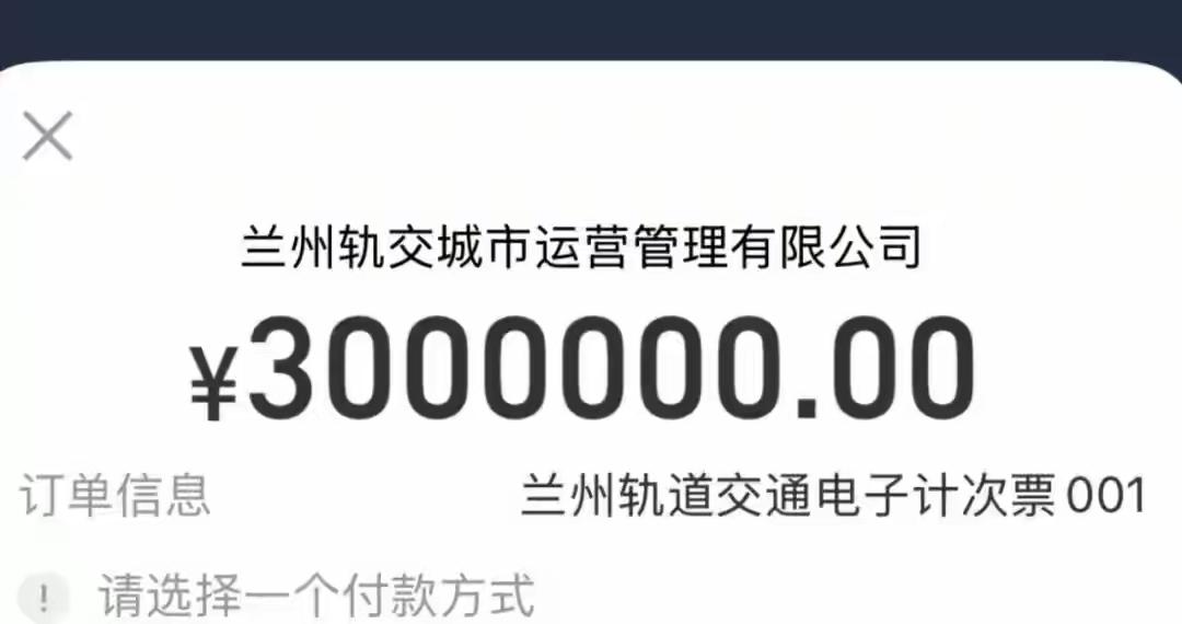 兰州地铁支付系统出现故障,乘客支付300元的时候,变成了300万! 由于兰州地