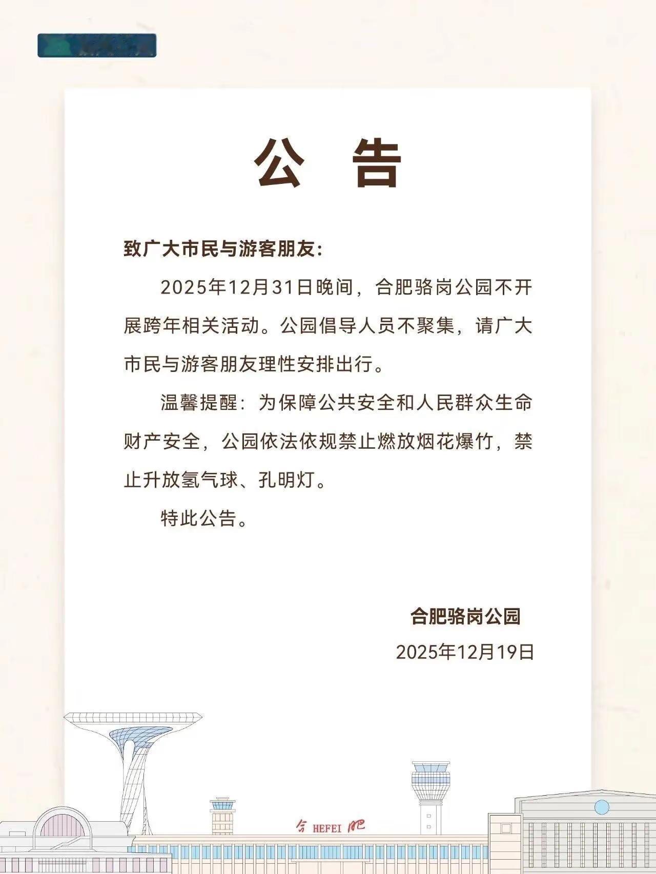 官宣!合肥骆岗公园不开展跨年活动。12月19日,合肥骆岗公园官方发布公告,明确12月31日晚间不开展任何跨年相关活动,网传的跨年演唱会也正式没戏啦~ 大家今年跨年准备去哪里?评论区可以聊聊真实生活分享计划 生活态度正能量 合肥 跨年