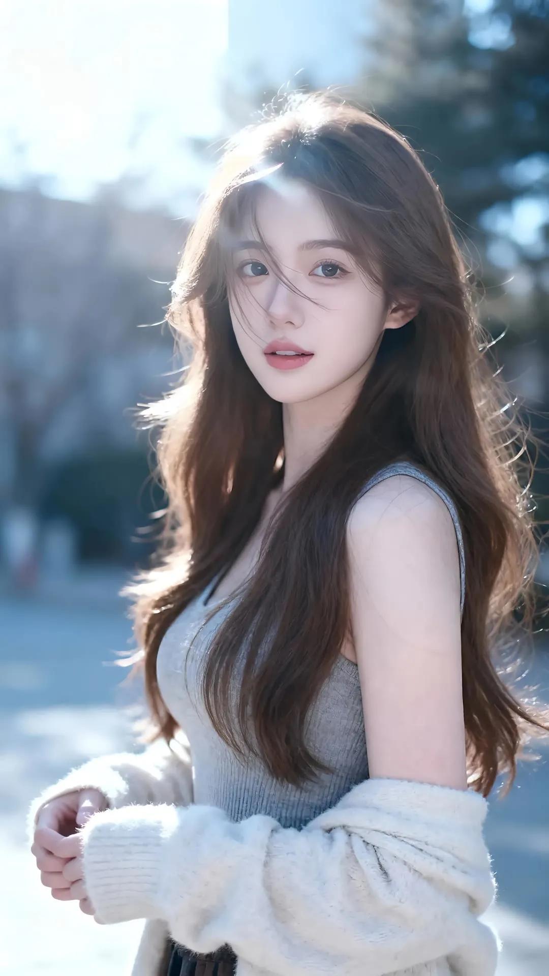 夜晚街头的少女,黑发飘飘,清新动人。街拍 高清美女