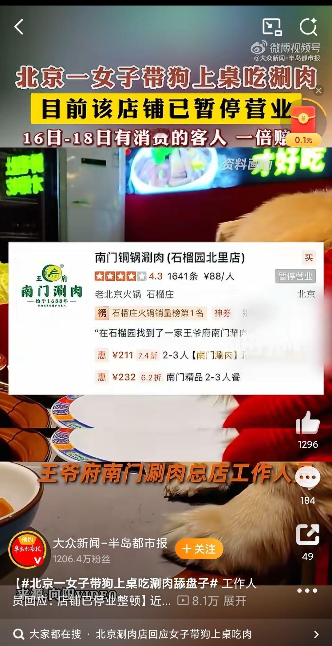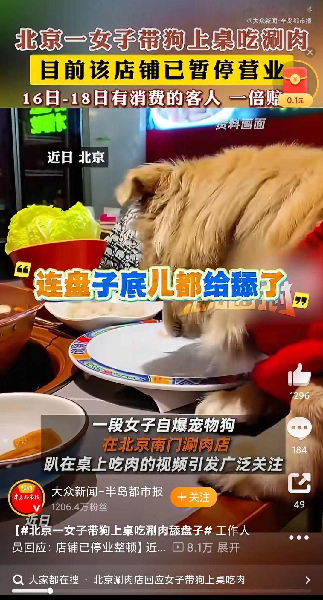 带狗吃涮肉的女子的天塌了!她没想到自己的“爱狗”行为遭到了网暴,昨天大家指责她