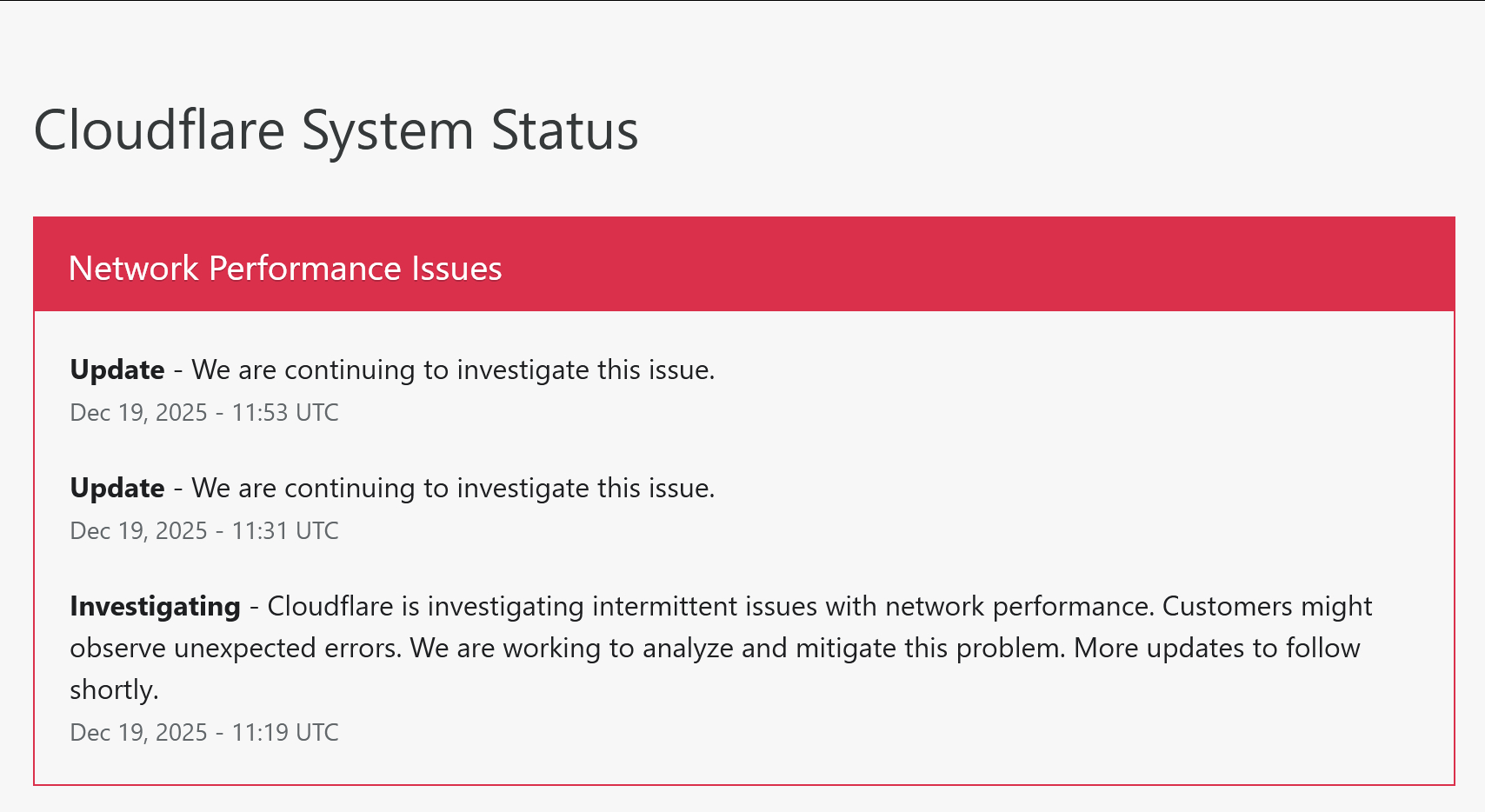Cloudflare 再次出现故障 (貌似间歇性的,感知不明显)