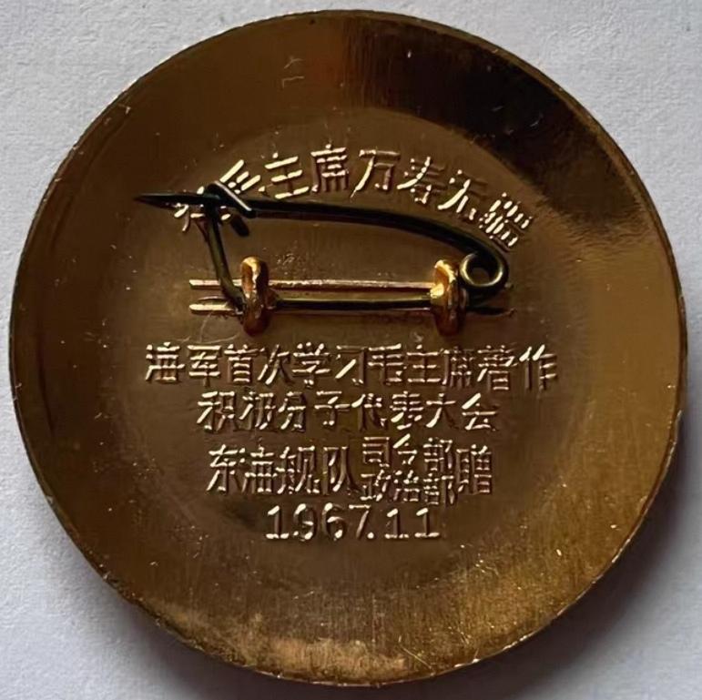 #红色文化# 毛主席像章欣赏: 《祝毛主席万寿无疆【海军首次学习毛主席著作积极分子代表大会·东海舰队司令部·政治部赠·1967.11】》