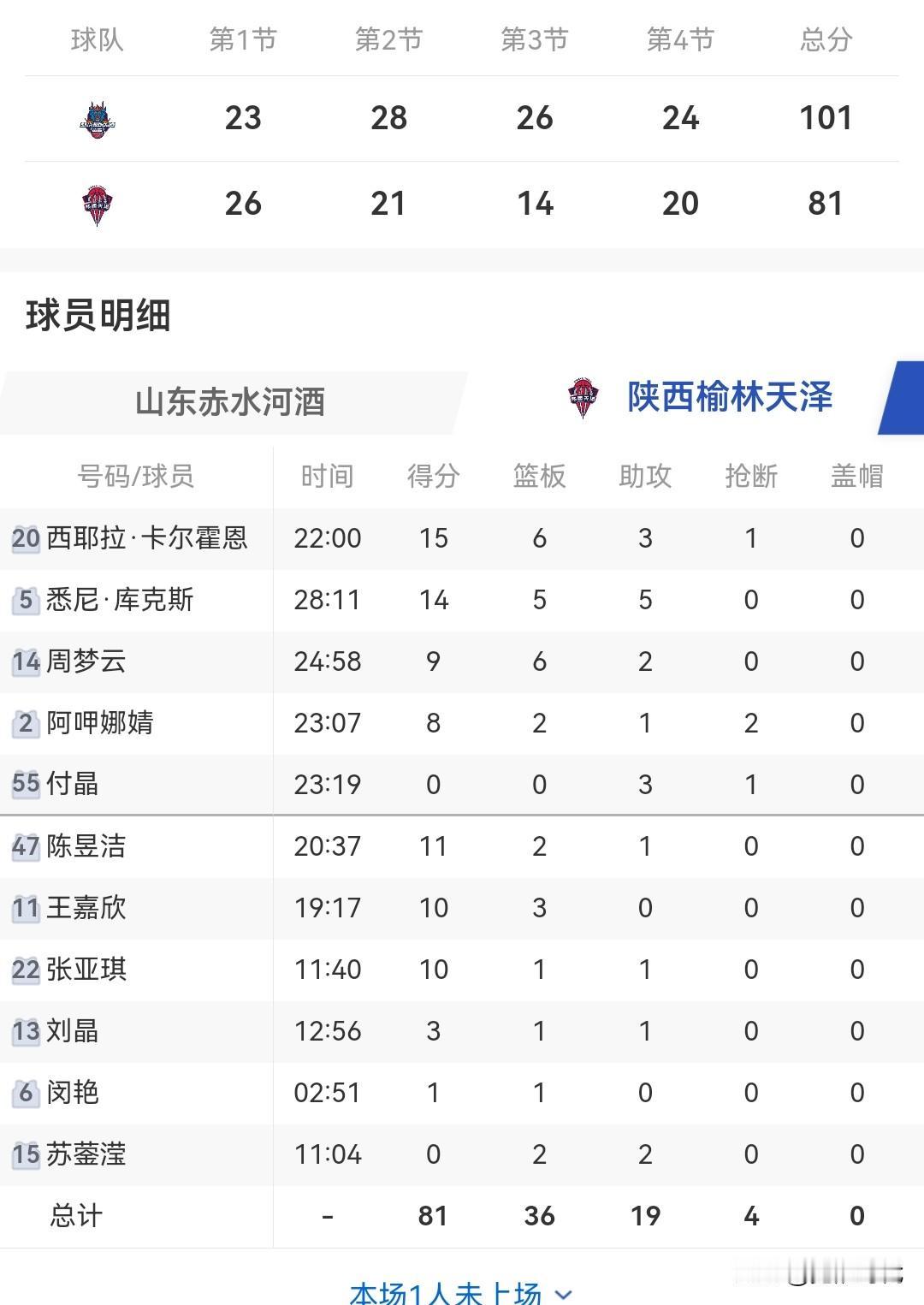 杨衡瑜曹君伟帕克均21+ 山东女篮胜陕西女篮