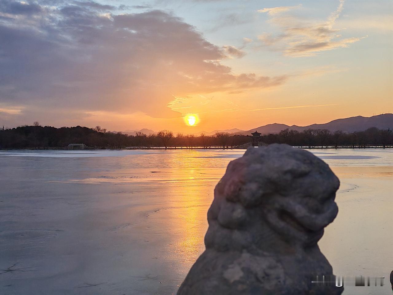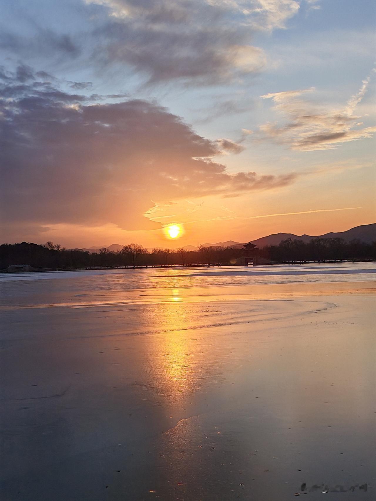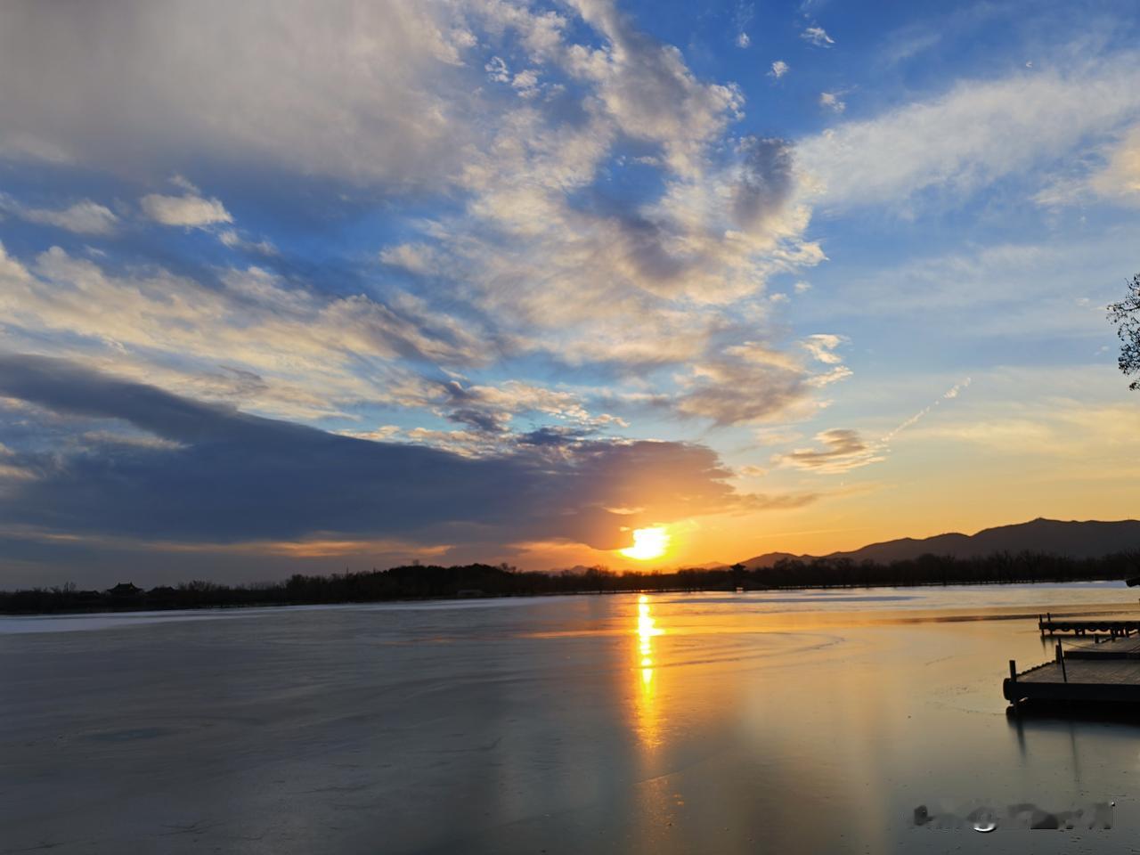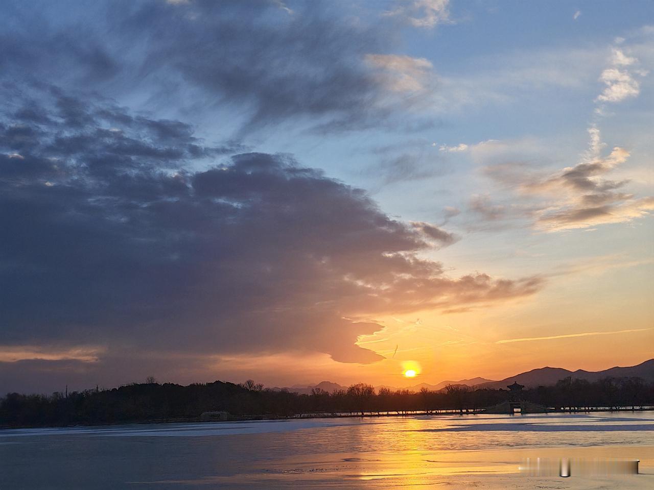 今天下午到颐和园去看金光穿十七孔桥俗称金光穿十七洞。金光穿十七孔桥是指每年冬至前后,夕阳余晖照亮十七孔桥所有桥洞,呈现出的壮丽景观 。 奇观成因 :由于地球公转,冬至前后太阳直射南回归线,北京地区太阳高度角最小,阳光变得斜长,且日落方位在西偏南。此时,十七孔桥的东西走向与太阳照射角度相契合,阳光恰好能照射到桥洞的侧壁上,形成“金光穿洞”的效果。同时,太阳光穿过大气层时,波长较短的光被散射,波长较长的红、橙、黄光透射能力强,使桥洞呈现出金色。 观赏最佳观赏时间是每年冬至前后半个月,每天下午3:30到4:20,冬至日前后下午4点左右效果最佳。 今天由于天气云层较厚,在太阳快落山时,太阳才穿出云层,角度太小,看到的“金光穿洞”不那么壮观,但拍的落日也令人惊叹。第一张不是这次拍摄的。后面的是今天下午4:30左右拍摄的。