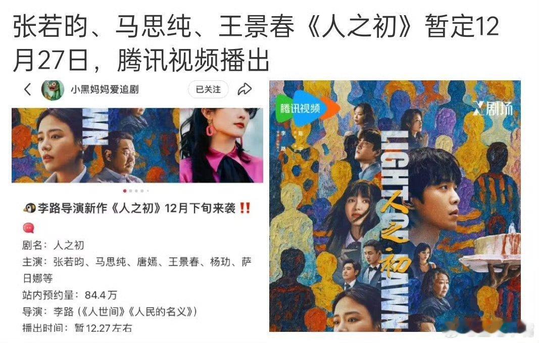 人之初定档1227张若昀 马思纯《人之初》暂定12月27日腾讯视频全网独播! 本剧班底阵容很强大!导演:李路(人民的名义、人世间)!主演:张若昀 马思纯 唐嫣 王景春 杨玏 萨日娜 该剧讲述了一起撞车事件将孤儿高风与富家女吴菲菲(马思纯饰)的命运紧密相连,两人从对抗到合作,携手揭开身世之谜与城市陈年黑暗的故事。