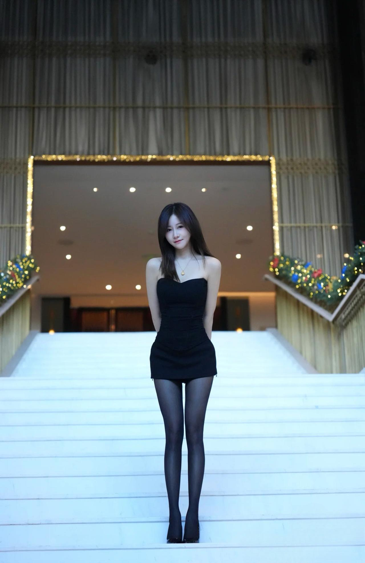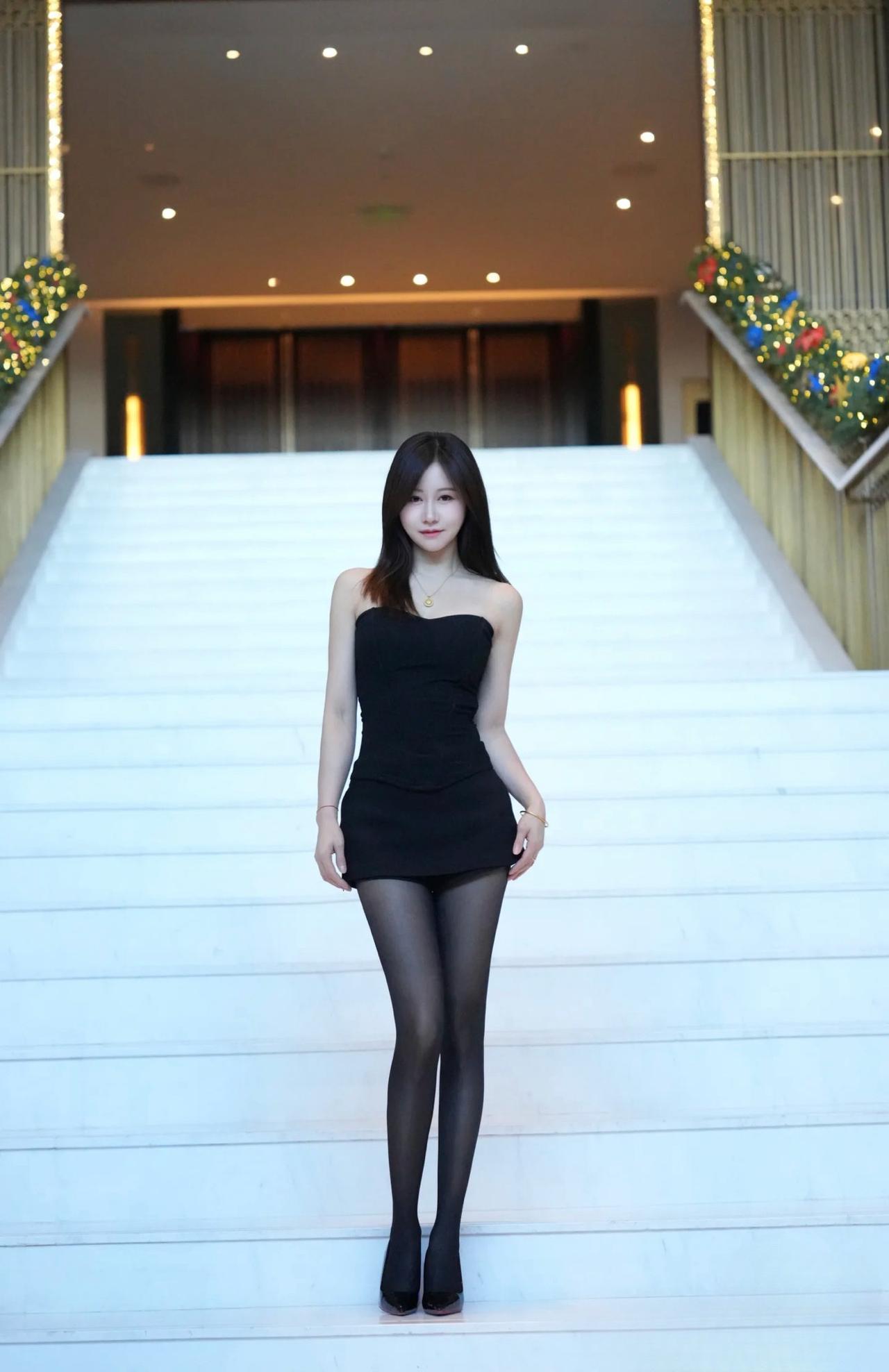 黑色上衣+闪亮短裙,自信满满,镜中自我