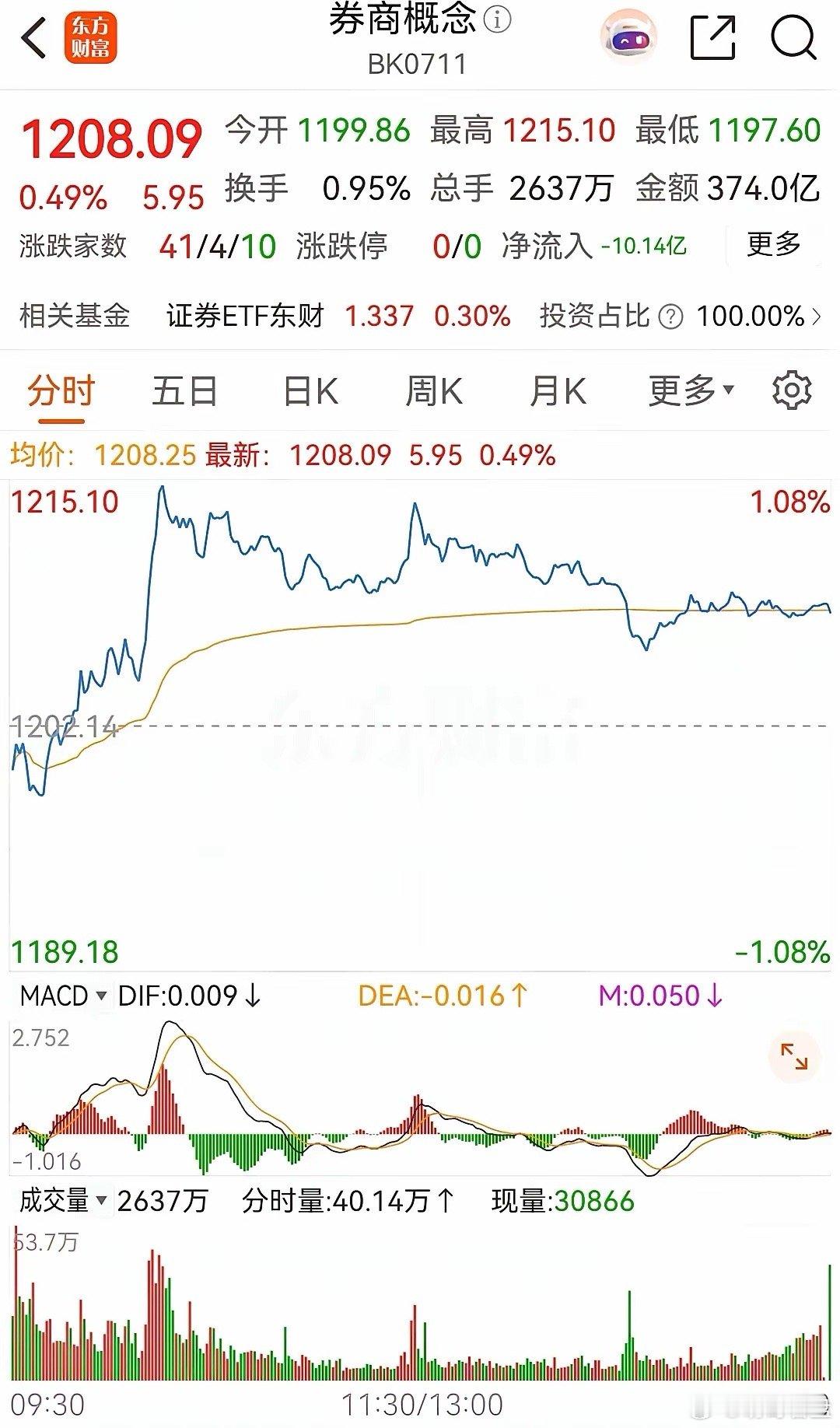 券商概念板块今天上午盘中出现异动拉升现象,最高涨幅曾高达 1.08%,到了下午,整体呈现出缓慢回落的态势。从今天的走势上看,券商概念板块最终收出一根带上影线的小阳线,上涨幅度为0.49%,板块成交金额为374.0亿元。今天收盘时板块内个股绝大部分都是红盘报收,其中涨幅最大的是天风证券,收盘时涨了 2.43%,其次是中信建投,上涨了1.76% ,这是继昨日回调后,今天就快速收复失地,整体走势很不错;跌幅最大的是信达证券,下跌了1.26%。对于券商概念板块下周的走势,可以更加乐观大胆一些,看多逻辑如下。一是政策与估值驱动:监管推动券商合并重组打造“国家队”,头部券商受益行业集中度提升;板块PB估值1.29倍,处于历史18.3%分位,低于银行、保险。 二是流动性预期:两市成交额连续57日破万亿,2025年H1券商业绩预增61%(净利润1015亿元),财富管理、两融业务提供基本面支撑。