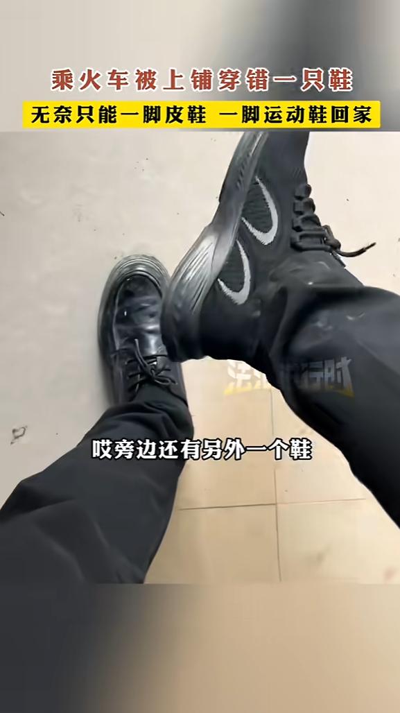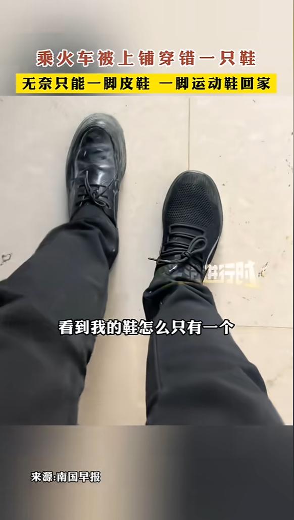 “笑不活了!”近日,广西南宁,一男子坐火车,当他准备下车时,却发现自己的另一只皮鞋不见了,旁边只有一只网鞋,乘客告诉他,穿错鞋的那人在前几站已经下车了,这让男子不得不妥协,只能穿着一双不同的鞋子出站。网友:幸好还留了一只。 这事的主人公是刘先生,他平时出门也挺注重舒适,这次要坐长途火车,为了能睡个好觉,别让摇摇晃晃的车厢折腾得老腰难受,他特意没买硬座,精挑细选了一张卧铺票,还特意选了个中间铺位,想着这样上下方便,也能少受点打扰,上了火车之后刘先生简单收拾了一下,就脱了鞋爬上铺位,很快就进入了梦乡,毕竟长途旅行养足精神才是最重要的。 他睡得正香,迷迷糊糊中就听到列车员喊着南宁站快到了,这才慢悠悠地爬下床,准备收拾东西下车,可刚一低头刘先生瞬间就清醒了,瞌睡虫一下子跑了个精光,眼睛瞪得溜圆,差点以为自己还没睡醒看错了,地上放着的鞋子,怎么看都觉得不对劲。 仔细一看好家伙,一只明明是自己的黑色皮鞋,另一只却变成了一只网眼运动鞋!这两只鞋放在一起,简直是画风突变,一个是商务风,板板正正,一个是休闲风,透气轻便,色系勉强能搭得上边,但风格跨度也太大了,妥妥的 “混搭非主流”,刘先生当时就懵了,心想这是怎么回事?难道是哪位乘客路过的时候不小心把鞋踢混了? 他赶紧蹲下来,在铺位底下、床周围仔细找了一圈,连缝隙都没放过,可翻来翻去就是没找到自己的另一只皮鞋,这时候下铺的一位乘客实在忍不住了,憋了一路的话终于说了出来,告诉刘先生,别找了,刚才有个大哥下车的时候,看着挺匆忙的,好像就是穿着他的皮鞋走的,那位大哥估计是拿错鞋了,而且早就在前几个站就下车了。 刘先生一听这话,瞬间就石化了,这剧情也太离谱了!他琢磨了一下,也大概能猜到是怎么回事,火车在小站停靠的时候,时间往往都特别短,有时候就一两分钟,那位拿错鞋的大哥,估计也是睡迷糊了,听到报站就急着下车,慌乱之中没仔细看,加上两人的鞋码可能一样,颜色又相近,摸起来手感也差不多,就这么稀里糊涂地把别人的皮鞋当成自己的穿走了,还把自己的网鞋留在了这里。 想明白之后,刘先生真是又好气又好笑。气的是自己好好的一双皮鞋,莫名其妙就少了一只,找都没法找,笑的是这事儿也太巧合了,居然能在火车上遇到这么粗心的人,可吐槽归吐槽,问题还得解决,火车已经到南宁站了,总不能光脚出站吧?那也太不体面了。 没办法刘先生只能硬着头皮,把这只陌生的网鞋穿上,一只脚踩着自己的皮鞋,一只脚套着别人的网鞋,就这样一瘸一拐地走出了火车站,那画面想想都觉得滑稽,走在路上,估计不少路人都得偷偷打量他,心里琢磨这是什么新潮流。 遇到这种哭笑不得的事,刘先生也没太往心里去,反而挺有苦中作乐的心态,他干脆拿出手机,拍下了这双 “鸳鸯鞋” 的视频,发到网上吐槽了几句,视频里两只风格迥异的鞋子并排走着,自带喜感,很快就吸引了不少网友的关注,大家看完之后都笑翻了,评论区里一片欢乐。 有网友调侃说:“这大概就是缘分吧,茫茫人海中,能遇到鞋码一样、还能精准调包的人,也太不容易了!” 还有人安慰道:“往好处想,起码人家还留了一只鞋给你,没把两只都穿走,也没穿两只左脚的,已经算是人道主义了。” 更有脑洞大的网友表示:“刘先生自信点,这就是今年最流行的不对称混搭风,你这是走在时尚前沿了!” 刘先生的这趟南宁之旅,估计这辈子都忘不了,本来是想舒舒服服睡个觉,结果却意外收获了一双 “鸳鸯鞋”,成了全网的笑谈,不过换个角度想,这也算是一次特别的经历,虽然有点小插曲,但也没造成太大的损失,还能给大家带来欢乐,也算是一件挺有意思的事。 希望那位穿错鞋的大哥,发现自己穿错鞋的时候,也能像刘先生一样乐观,说不定还能因此开启一段奇妙的 “寻鞋之旅” 呢! (信息来源:《乘火车被上铺穿错一只鞋,无奈只能一脚皮鞋一脚运动鞋回家》法治进行时)
