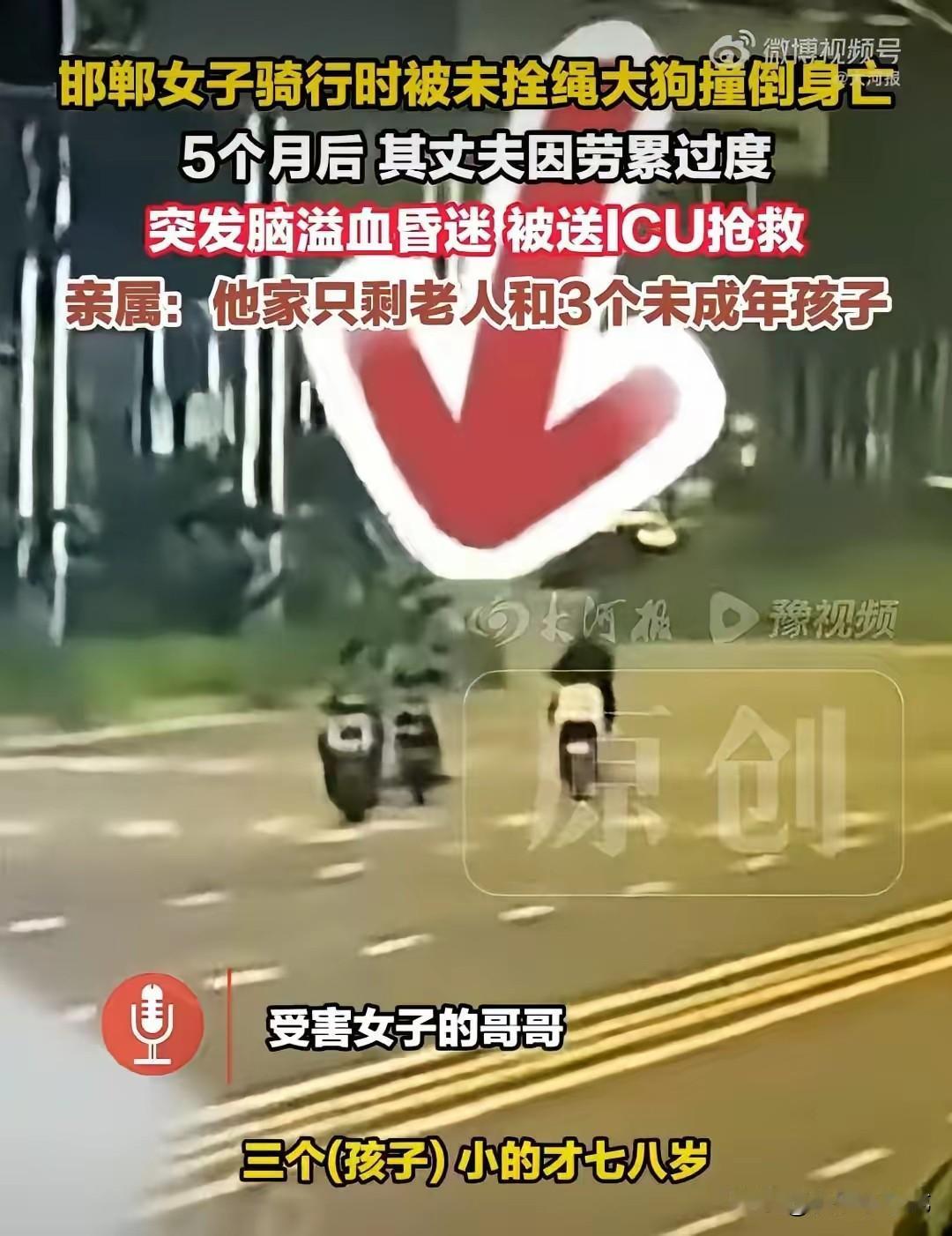 女子被大狗撞倒身亡,丈夫讨公道住进ICU,三个孩子将面临成为孤儿风险, 狗主人逃