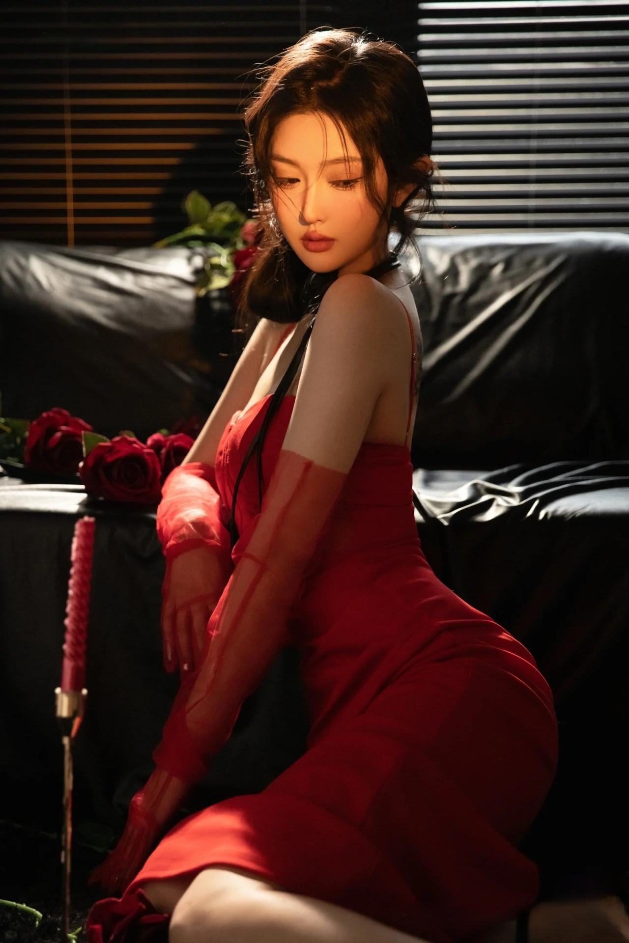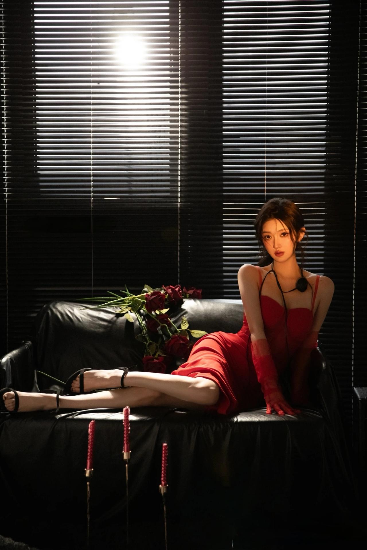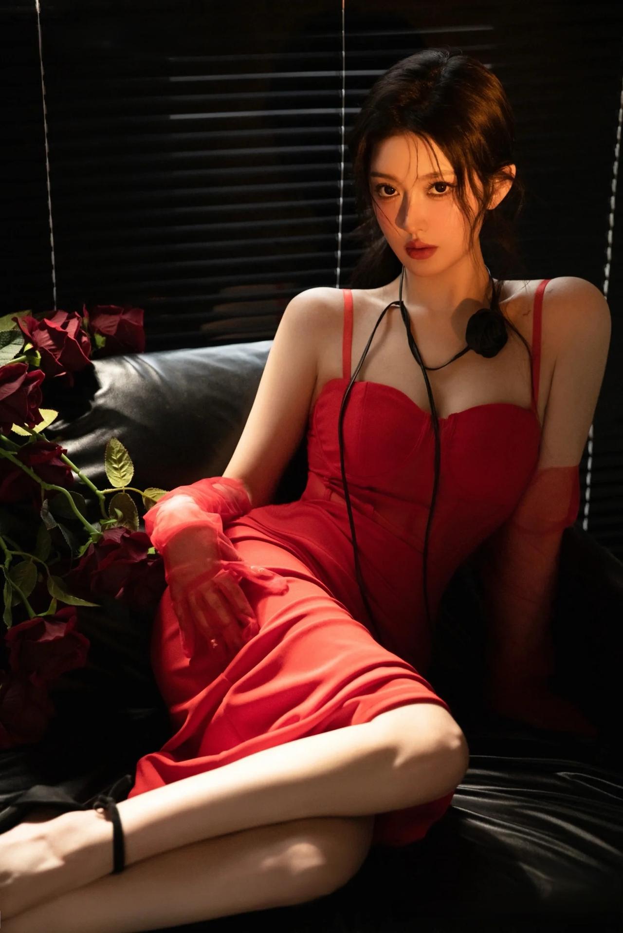 红衣女郎与玫瑰的完美搭配,尽显优雅与神秘🌸🌸🌸 高级感写真推荐 氛围感写真 高颜氛围感写真 红衣佳人写真 玫瑰美人写真