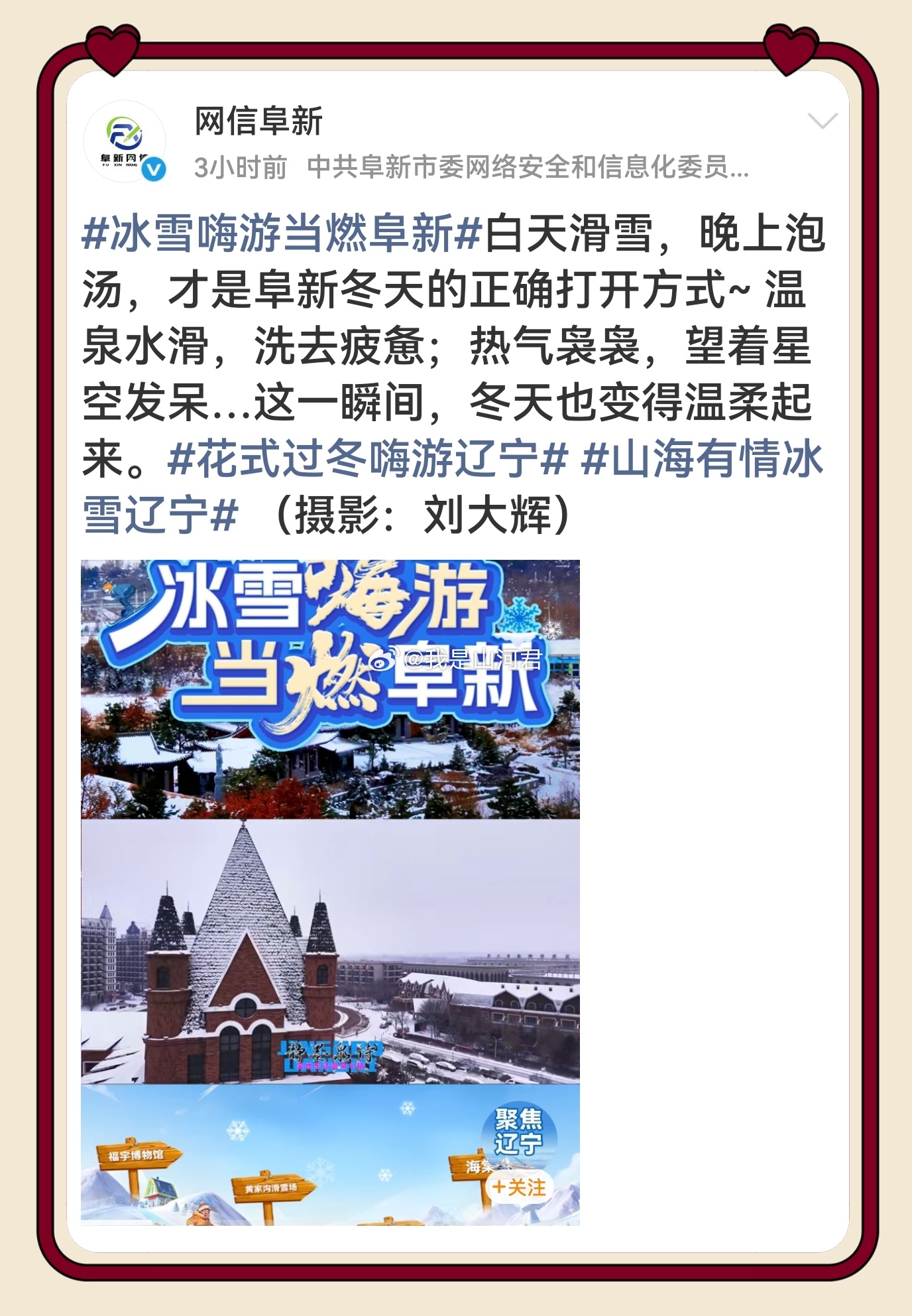 冰雪嗨游当燃阜新 滑雪的畅快、温泉的放松,再加上八千年的文化厚度,这样的阜新冬天太有魅力了!已经能想象在热气缭绕中仰望雪落的模样,历史与自然的双重疗愈,心动了!在东北解锁雪地吹泡泡的浪漫贵州向全国发出冬日邀请函 锦州·锦州市自媒体协会