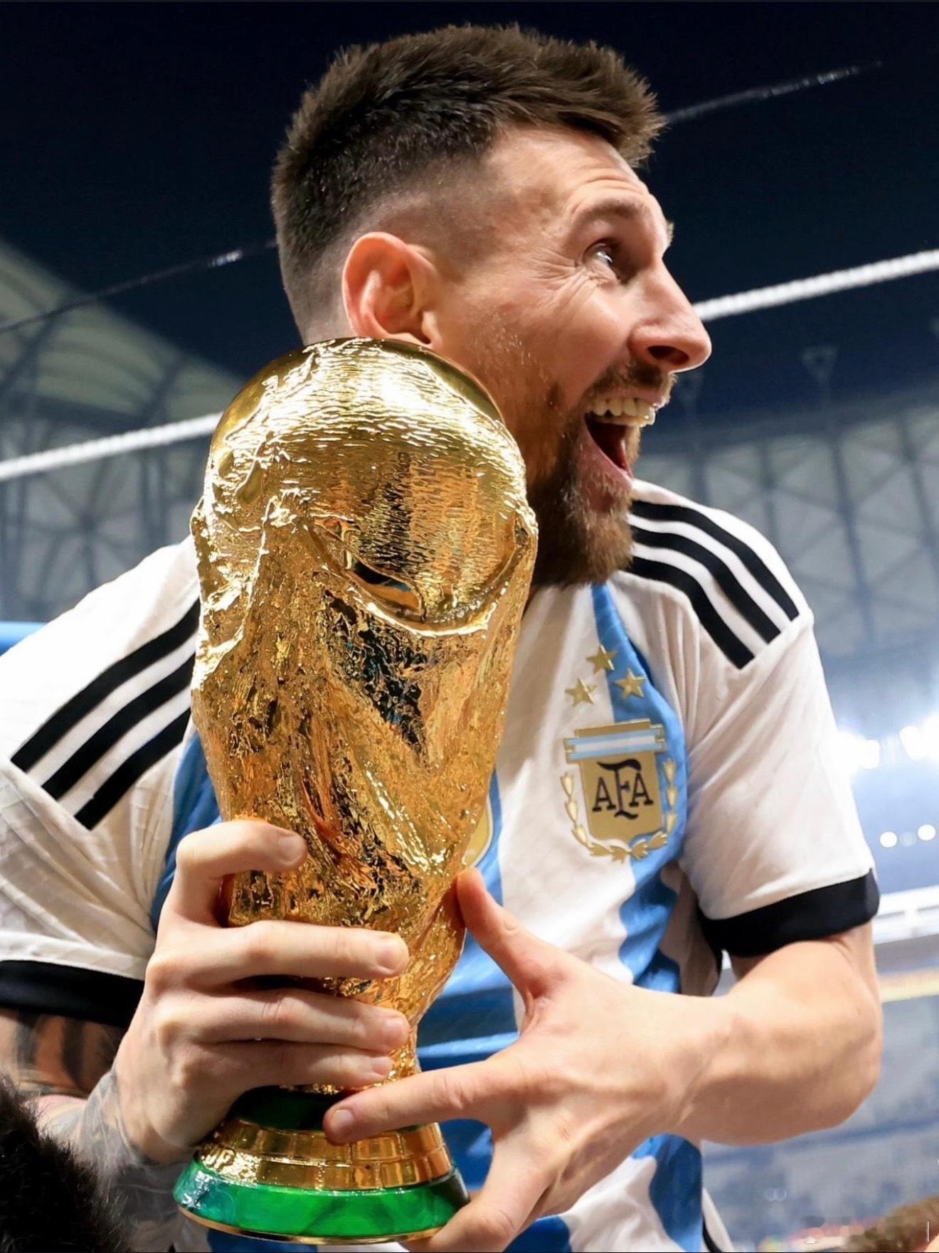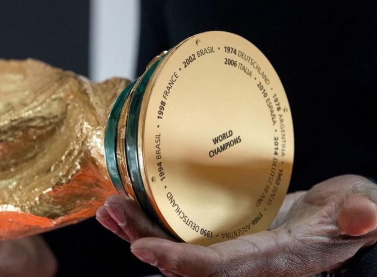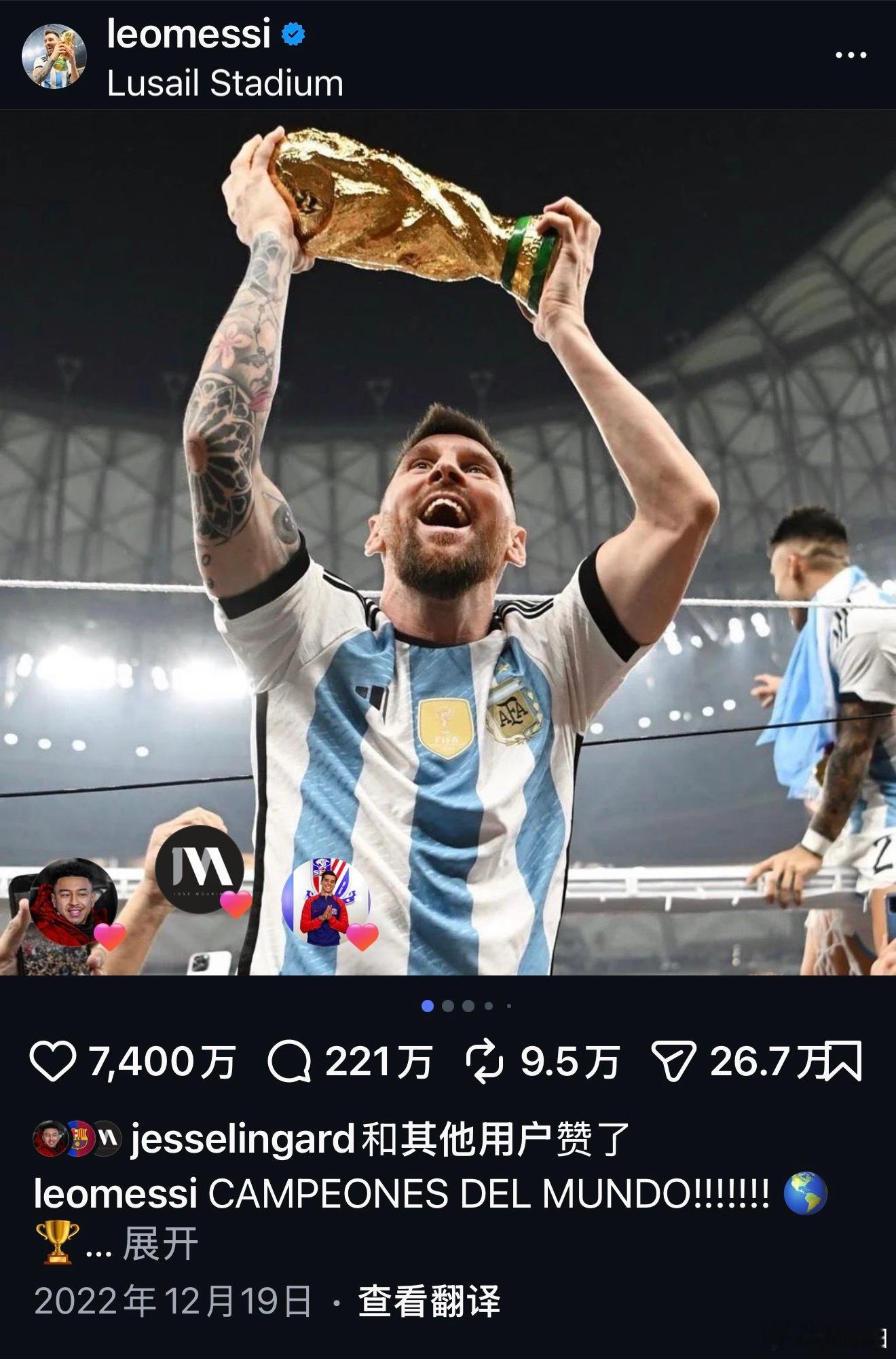 今天是 12 月 19 日,梅西社交媒体重新发布了 3 年前的这一天,他那张著名的获得 7400 万点赞的世界杯捧杯的照片。(图一)阿根廷世界杯夺冠三周年 有个插曲就是:那张创造史上点赞最多的著名照片中的大力神杯,其实是一位阿根廷球迷带去现场的赝品,从看台上就这么传到了场下梅西手里。(图二)图三中可以看到,当迪玛利亚发现自己和梅西手里同时都有奖杯时,他一度以为自己拿的那个是假的,还告诉寸步不离的几位保安应该去保护梅西手里的那个真的奖杯,但保安明确告诉他,你手里那个才是真杯。迪玛利亚于是立刻找到梅西,通过指出杯底的细节告诉梅西,真的世界杯奖杯在我这里。图四这张近照,可以清楚看到梅西手里,球迷带入球场的那座赝品金杯的量产质感。大力神杯真杯是以4.97公斤18K黄金铸造,底座上镶嵌的是绿色孔雀石。图五图六可以看到大力神杯真杯底部的细节,和欧冠决赛不同的是,世界杯决赛没有现场铭刻冠军球队名字这个环节。阿根廷捧杯时,杯底还没有刻上阿根廷的名字,当颁奖典礼结束后,世界杯真杯会被送到专业机构,这时候才会开始在底部铭刻上冠军球队的名字。图七是 1994 年世界杯巴西队夺冠时大力神杯杯底照片,底部当时没有铭文,1998 年世界杯颁奖时候,世界杯底部已经通过铆钉固定方式加了圆形铭牌,刻上了冠军的名字。图九可以很清楚看到当时的杯底铭文。但这种刻法的问题就在于比较占地方。所以从2018年世界杯开始,球队的名字变成了沿周边的圆形排列(图十)。杯底中央是 world champions。这样一来,杯底空间就能管用很多届杯赛了,而且看上去更加美观。