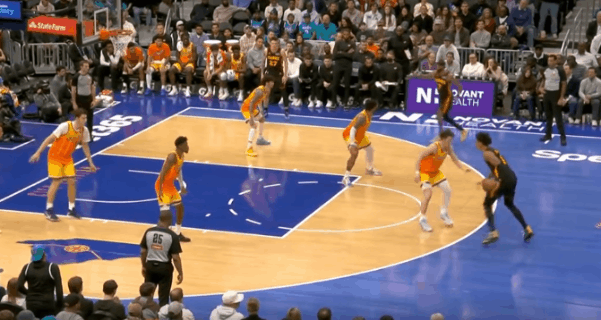 杰伦-约翰逊观察:转换&攻框小王子,狂砍43分生涯新高图1行进至前场接杨传球顺势启动左路突破,行进间对抗撞飞克尼普尔后起慢三步后抛投终结。图2,第3节36秒这个回合同理,持球推过半场后利用冲击力优势抓早期进攻启动突破,行进间沉肩对抗撞飞防守人的同时完成合球后起步终结。图3和被中锋防守的戴森发动“Chicago Action”战术配合,在小乔挤过掩护墙的瞬间拒绝掩护走左路突破抢出身位优势,行进间遭遇格林协防刷卡导致降速被小乔二次纠缠,撩起手臂合球衔接跳投后起身终结,后仰跳投打板命中。图4为杨设置“Touch Screen”抢出身位优势后接球处理短下顺,吸引迪亚巴特协防注意力后为幽灵区游弋的古耶送出空接。图5进攻时间还剩9秒,弱侧接球硬解:刺探步起手调度防守人防守重心,随后后蹬步衔接交叉步启动左路突破。行进间沉肩、支肘对抗的同时右脚向前刺探急停,抗开防守人后前脚蹬地衔接后撤步出手后仰中投,最大化投篮空间——亚历山大常用的技术。图6持球刚过半场立即衔接和被中锋错防的戴森、杨三人的“西班牙挡拆”(Stack)配合,左路突破直杀篮下,迎着回退篮下的瑞安起身强硬打进上篮。图7借助奥孔古的掩护点名克尼普尔,启动右路突破躲过小乔刷卡后迎着内线两人起跳干扰抛投打进。图8单打克尼普尔,左路突破转背身吸引弱侧防守注意力,三球和小乔防守沟通失误,约翰逊转身后立即找到切入篮下的沃克。图9上线操刀双掩护,面对绕防+沉退坚决持球三分惩罚,打进关键进球121-122。往期回顾网页链接网页链接网页链接网页链接NBA