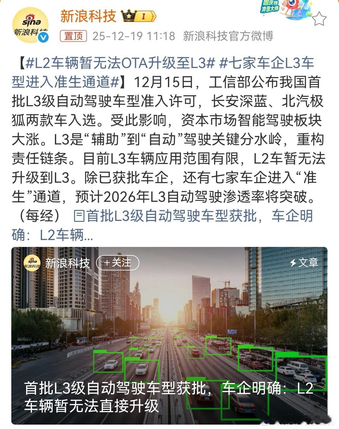 L2车辆暂无法OTA升级至L3这样对消费购车影响挺大的,购车决策变谨慎起来,打算买智能驾驶车型的消费者,会担心自己买的L2车型后续无法升级L3,陷入“买完就落后”的困境,可能推迟购车或转向已获批L3的车型。 南宁