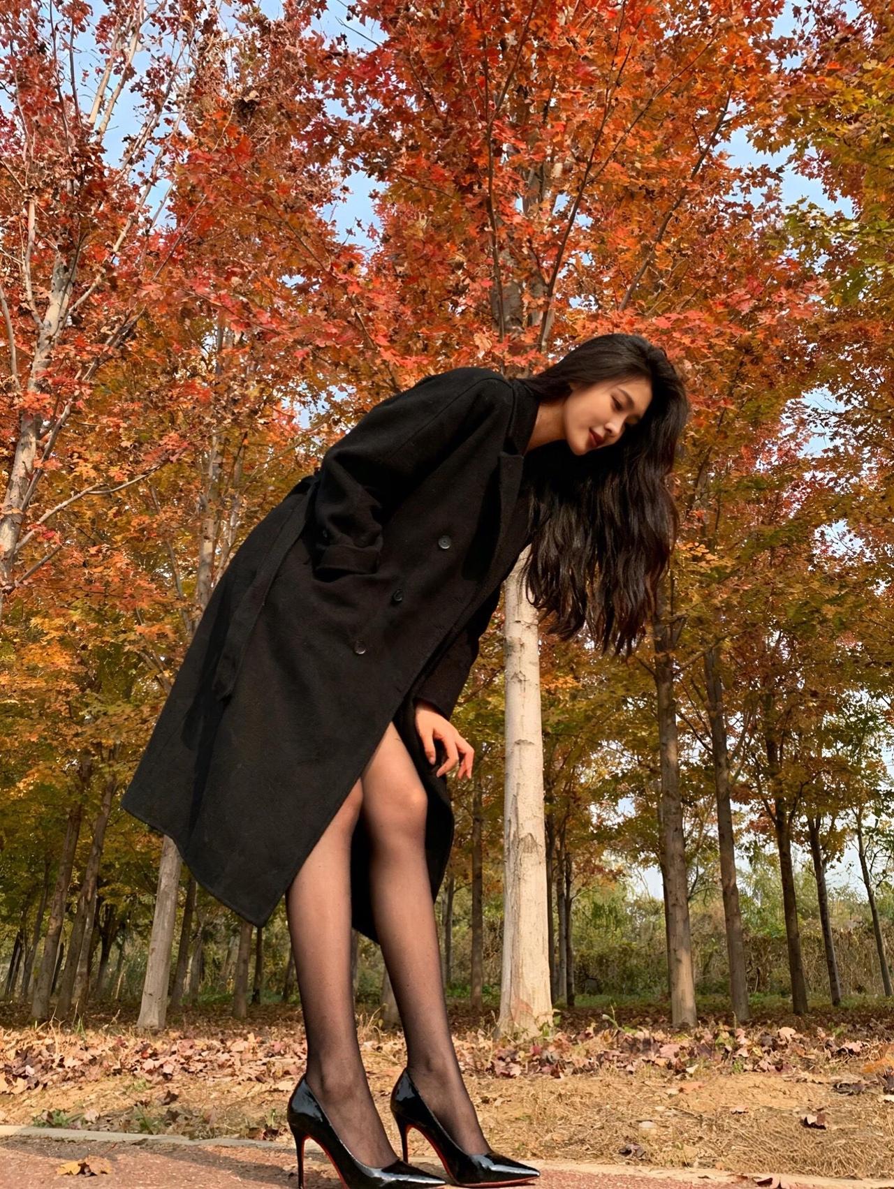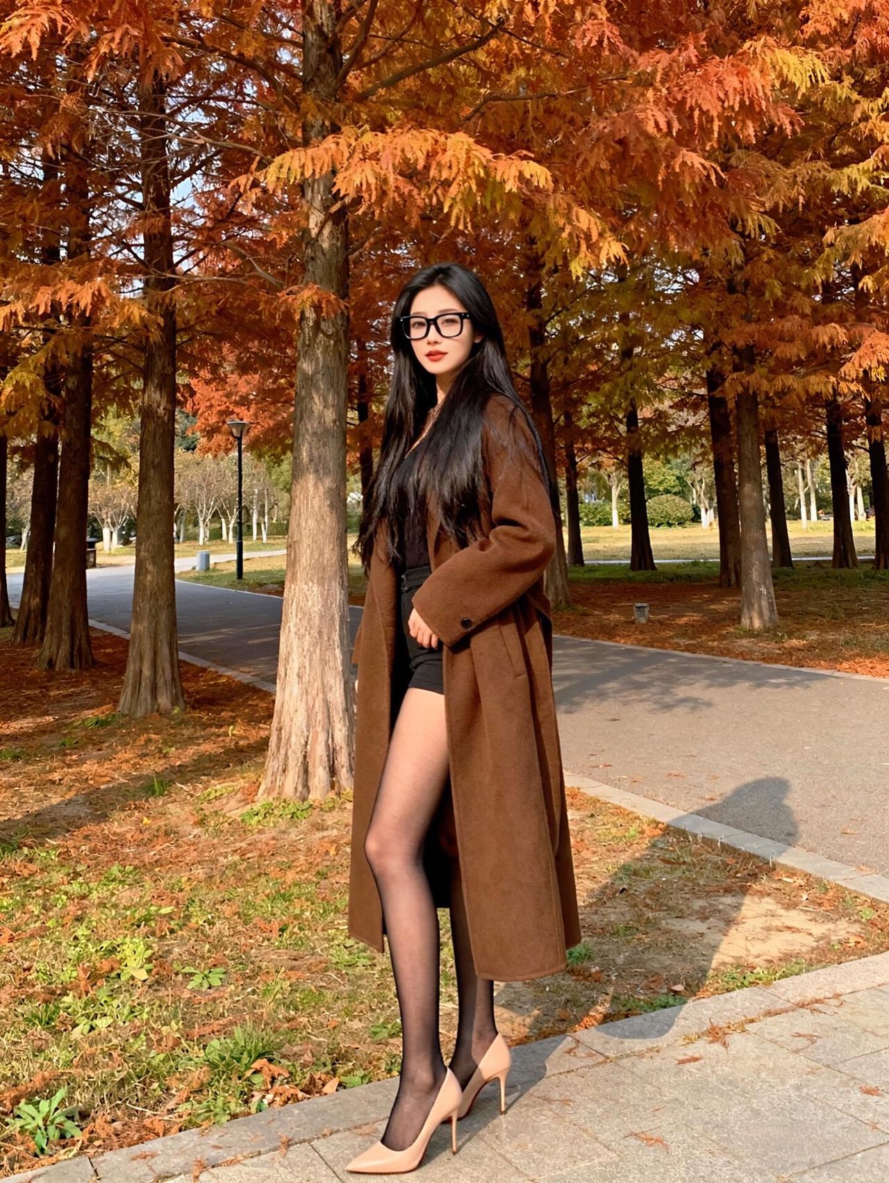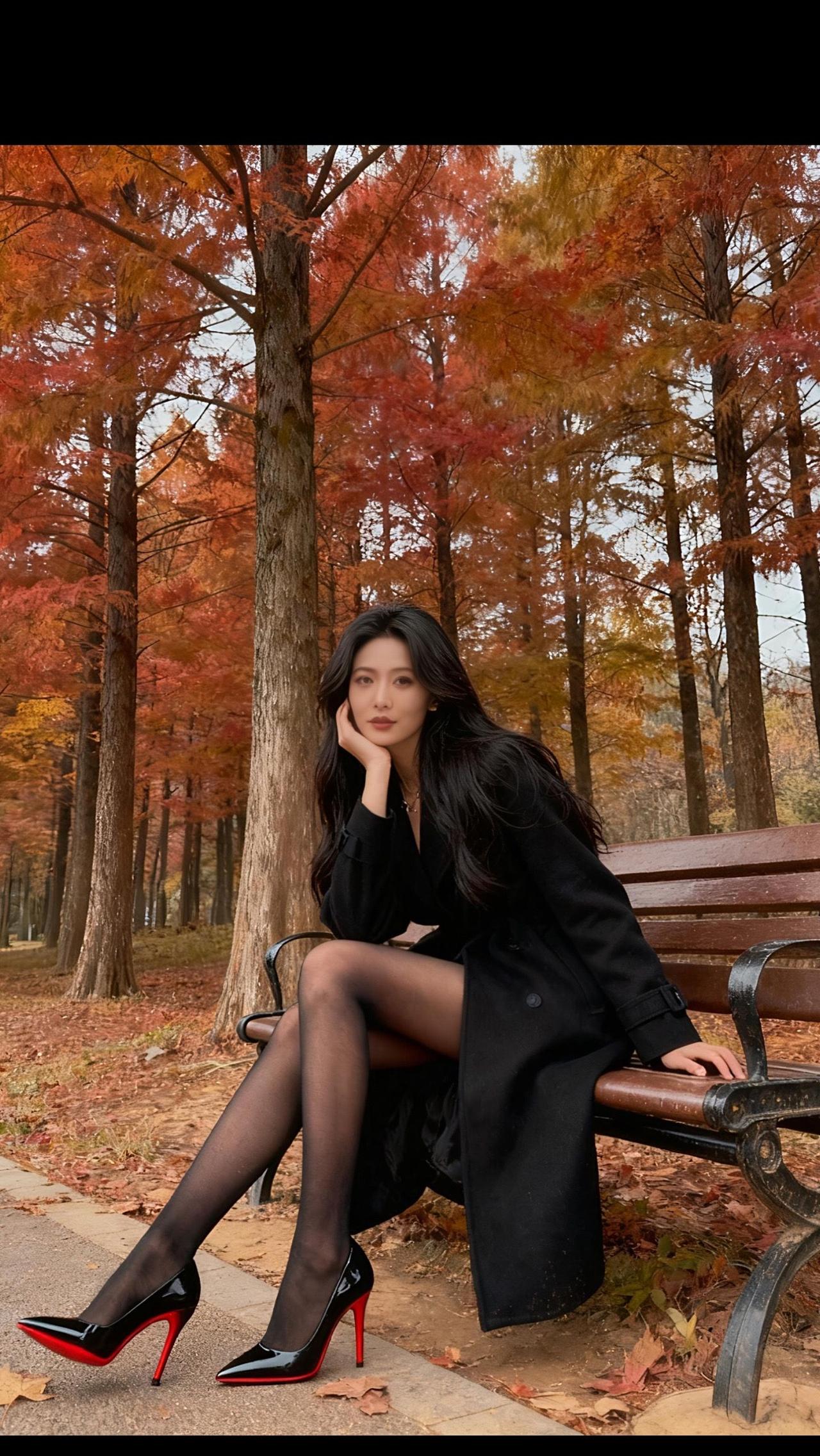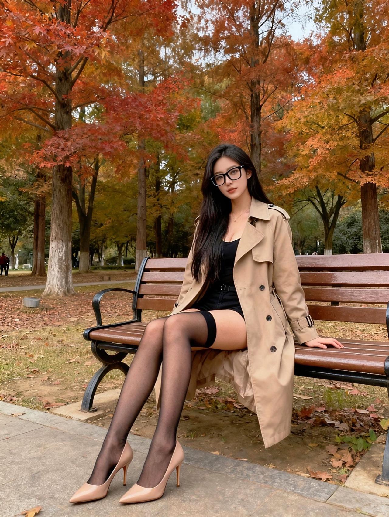 什么样的身材会美到犯规?秋日公园长椅上,时尚女孩享受宁静时光。
