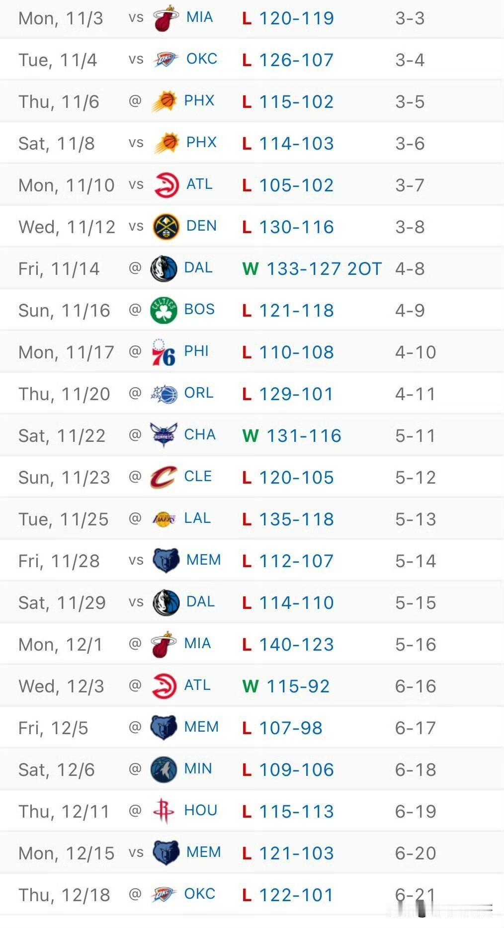 一路长“红”!!!快船11月开始到现在只赢了三场球! 看到这个图是不是很有意思