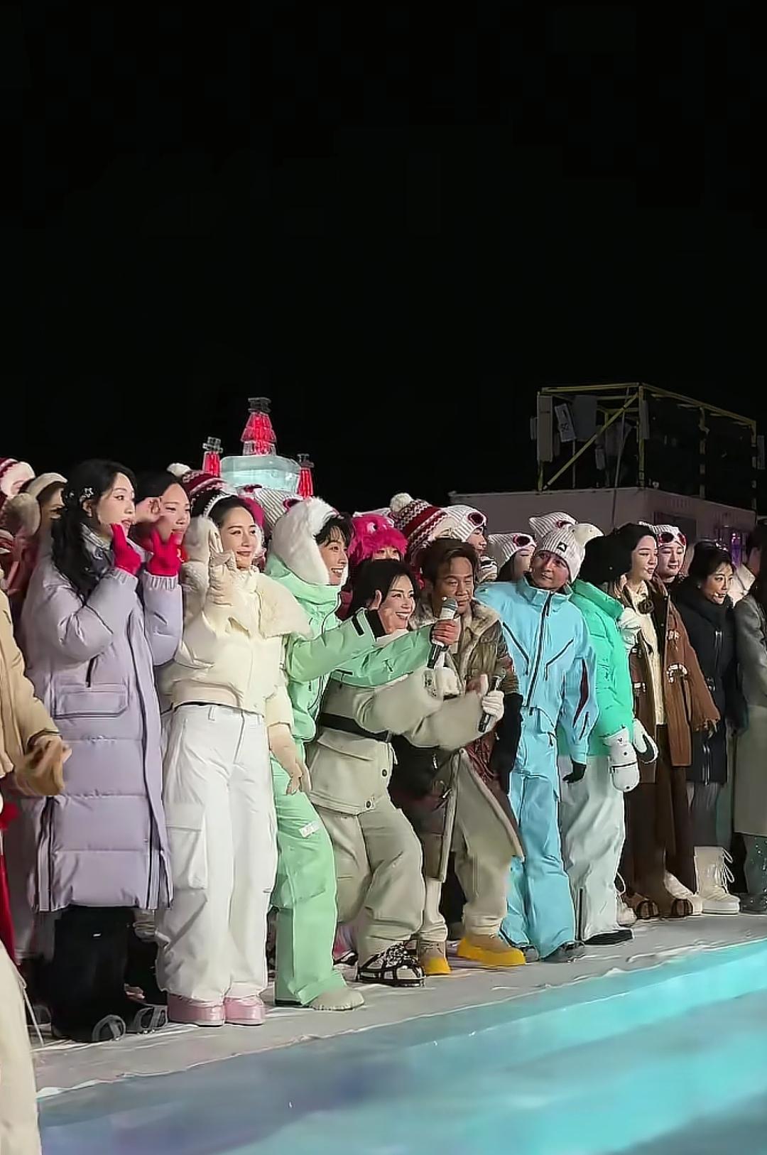 12月19日晚上,在吉林长春冰雪晚会上,看到了刘涛、谢娜、宋小宝和李维嘉等熟悉的面孔。 李维嘉戴着灰色帽子,穿着浅蓝色工装演出服,站在宋小宝的左手边。宋小宝穿着白色裤子和咖啡色棉保暖大衣,站在刘涛的左手边。刘涛穿着一身浅白色的套装保暖服,戴着白色手套,看起来还是那么有气质。 谢娜穿着白色羽绒服,看起来很有喜感,大家一起开心献唱,晚会很热闹。