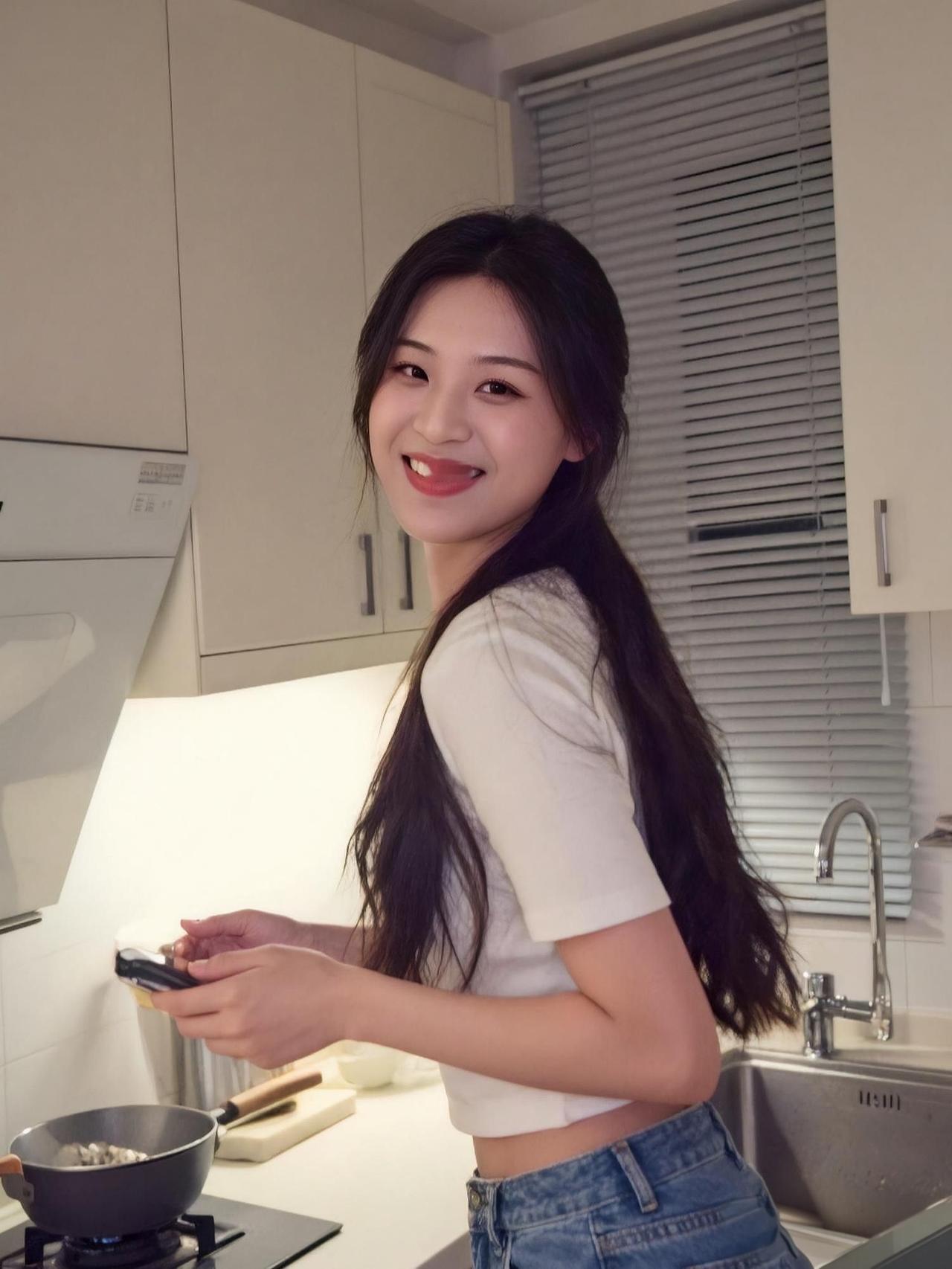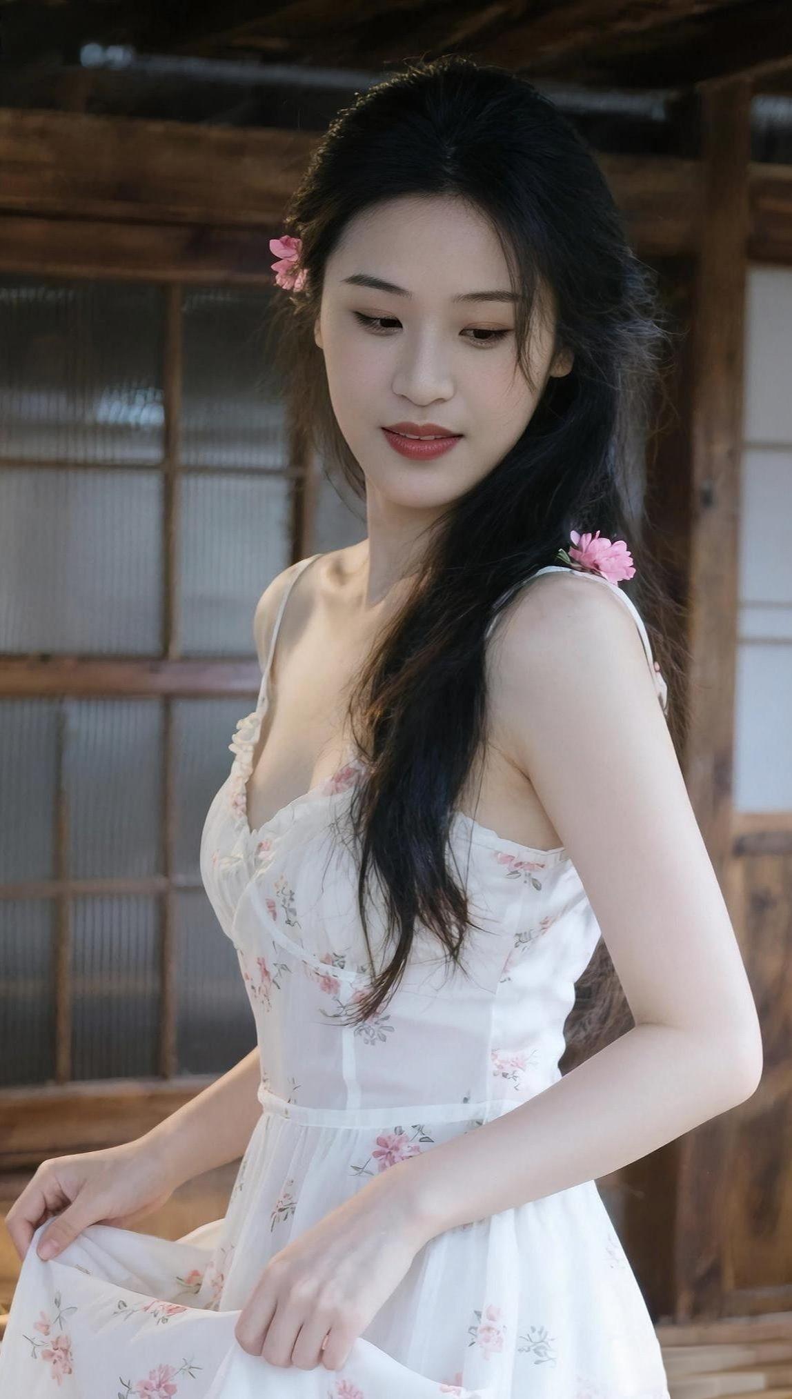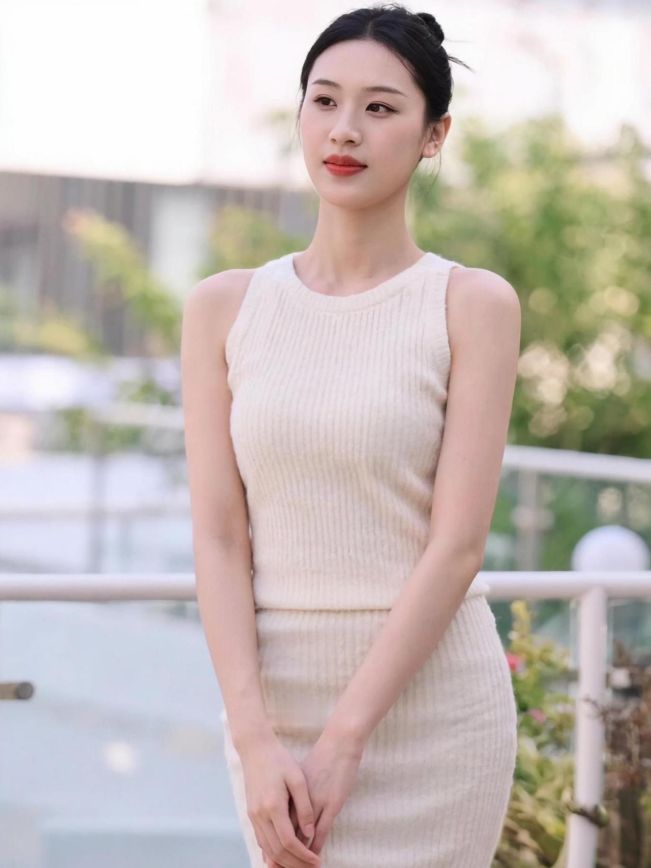 木质的纹路里 驼色针织裙揉碎了光 指尖轻抵腮边的瞬间 温柔便成了具象的模样 赤脚踩着原木的温凉 眸光里盛着未言的晴朗 不张扬的美 是岁月都愿轻放的香 木阶斜倚沐晨光, 驼影裁云织素章。 皓腕轻扬凝玉露, 明眸流盼胜秋霜。 不借铅华添秀色, 一身温婉自芬芳。 灰色高领针织裙