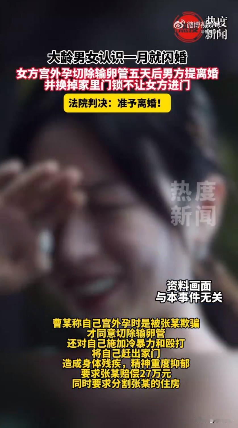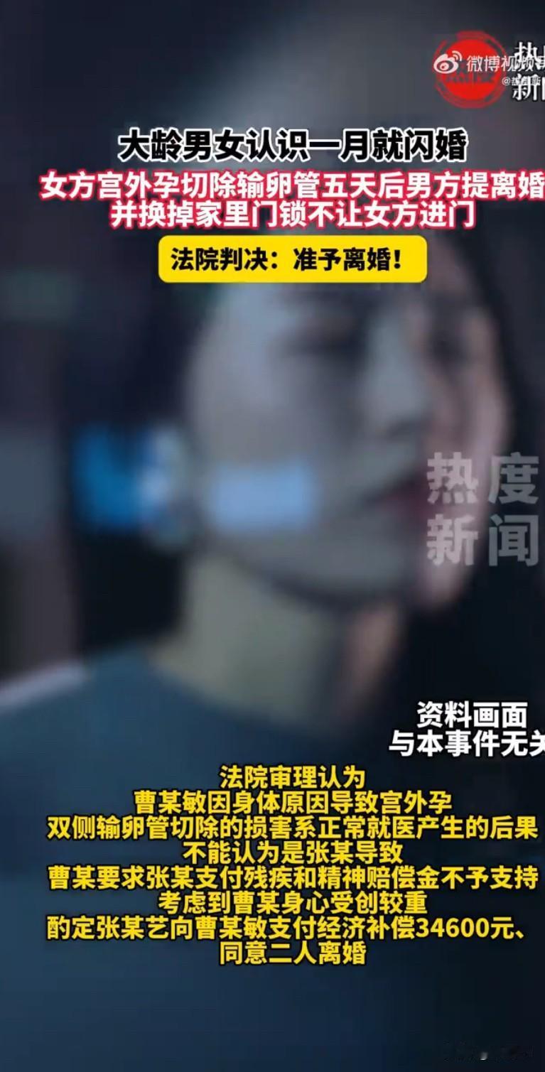四川西充有对年轻人,认识没多久就火速领了结婚证,男方还给了八万八的彩礼,本以为是闪婚遇真爱的美好开始,没想到后面的事让人心里发凉,结婚后没多长时间,女方就查出身体出了问题,最后因为情况紧急,不得不做了输卵管切除手术,刚从手术台上下来没多久,还在病床上休养的时候,丈夫就直接跟她提了离婚;好好的一场婚姻,没熬过术后恢复期就闹到要散伙的地步,换谁都难接受,女方本来就因为手术身体受了重创,得知丈夫要离婚的消息后,精神上更是遭了重创,一天天变得消沉低落,最后被查出患上了重度抑郁,整个人的状态一落千丈。 后来这件事被记者从裁判文书网上发现,才被更多人知道。大家看了都忍不住唏嘘,本来闪婚就意味着两个人没多少感情基础,只是凭着一时的好感走到一起,面对考验的时候自然更容易出问题,女方为了身体康复已经承受了巨大的痛苦,失去输卵管对女性来说本身就是很大的打击,而最该陪在身边支持她的丈夫,不仅没有半句安慰,反而在她最脆弱的时候选择抛弃,这样的做法实在让人寒心,八万八的彩礼当初是为了组建家庭而给,如今婚姻刚遇到坎儿就提离婚,难免让人怀疑这份感情的初衷。 好好的一个人,因为一场仓促的婚姻,不仅身体受了永久性的伤害,精神上还患上了抑郁症,好好的人生轨迹被彻底打乱;其实婚姻从来不是一时冲动的决定,而是需要长久的陪伴和互相扶持,尤其是在对方遇到困难的时候,更该携手共渡,而不是撒手不管。这场悲剧也让很多人明白,闪婚真的要慎重,没有足够的了解和感情基础,一旦遇到疾病、意外这些考验,婚姻就容易不堪一击。而作为伴侣,在对方最需要依靠的时候选择离开,不仅违背了婚姻的承诺,也给对方造成了难以弥补的伤害。 来源:热度新闻