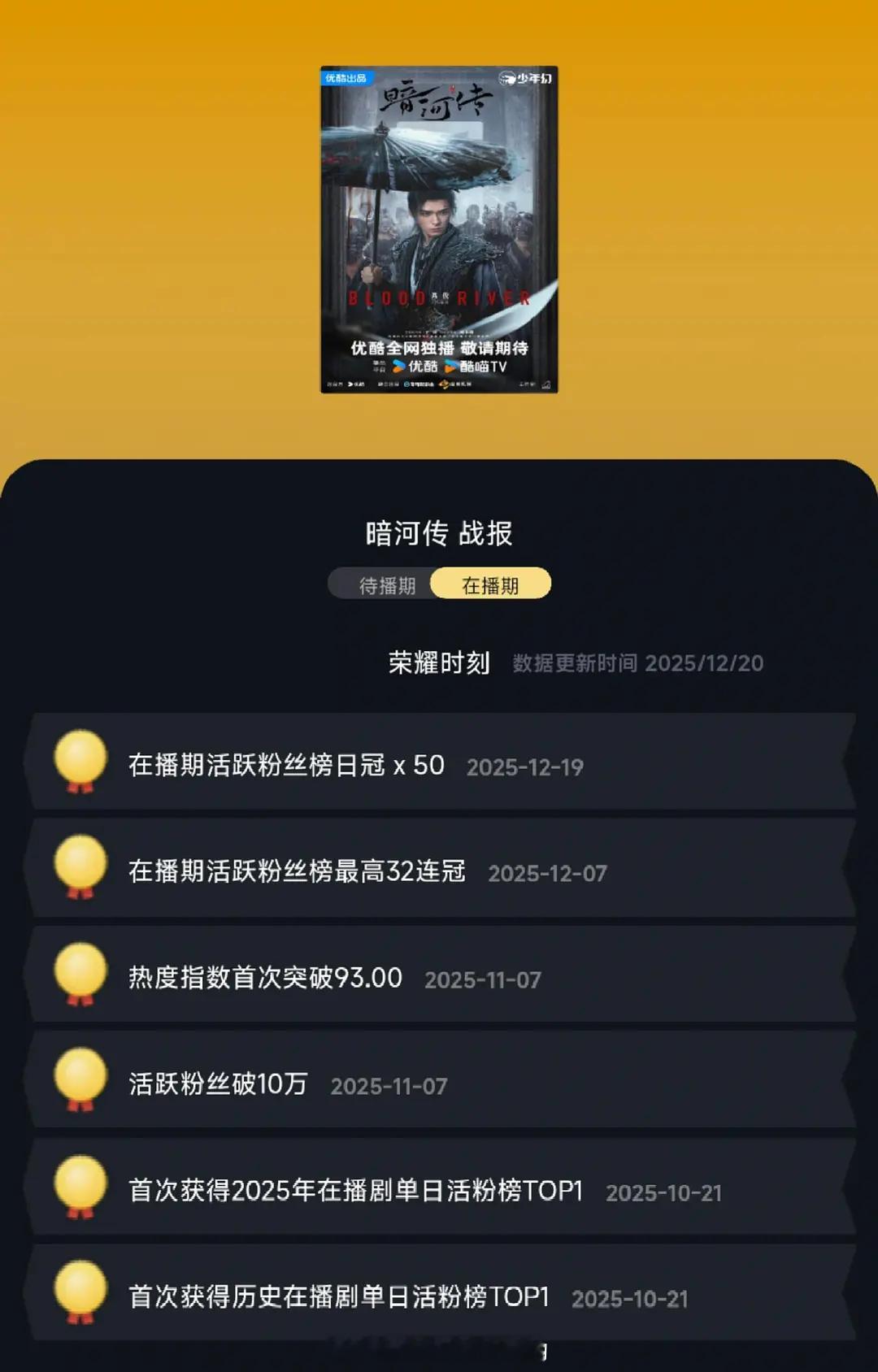 龚俊暗河传最新战报🔥日冠×50 最高32连冠 活跃受众断层第一还涨了