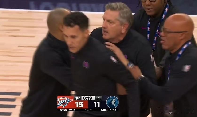 罕见!芬奇开局不到六分钟被驱逐! 今天森林狼队对阵雷霆队的比赛,仅仅首节6分19秒,由于不满雷霆队球员多次对爱德华兹犯规但裁判未吹罚,森林狼队主教练芬奇情绪失控怒喷裁判,助理教练拉都拉不住,最终连续吃到两次技术犯规被驱逐出场。 球队主教练首节不到被驱逐,这种情况真的太罕见了。如今联盟裁判的吹罚尺度越来越缺乏公正,所以才导致主教练、球员频频情绪失控,是时候该进行管控了!