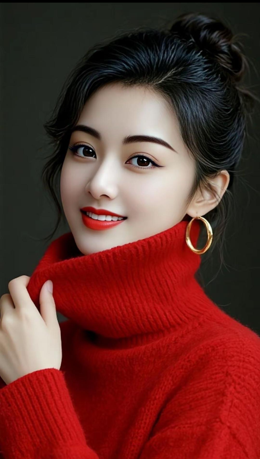 优雅东方美人,黑发红唇,精致耳环,传统刺绣纹身,韵味十足。高清美女 美女人像群