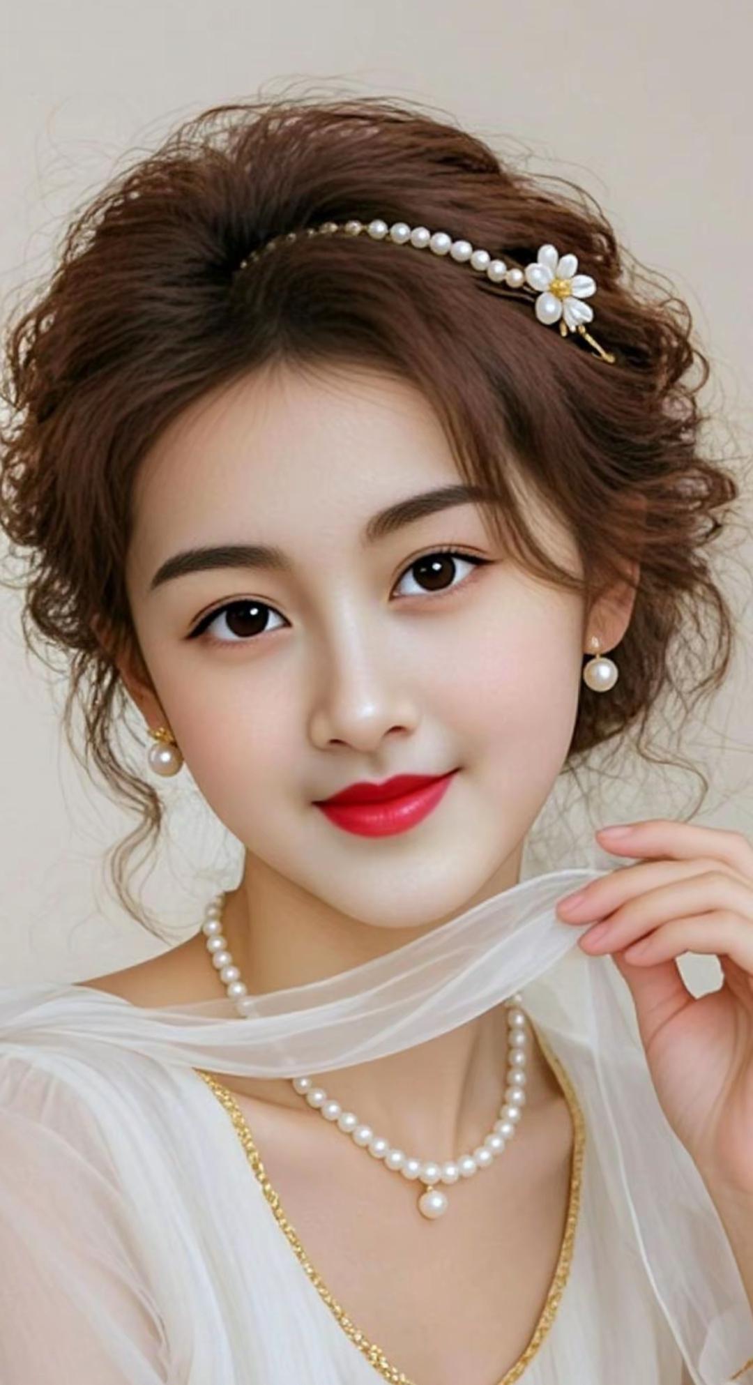 优雅气质,复古风穿搭,珍珠耳环点缀,温柔迷人。高清美女 美女人像群