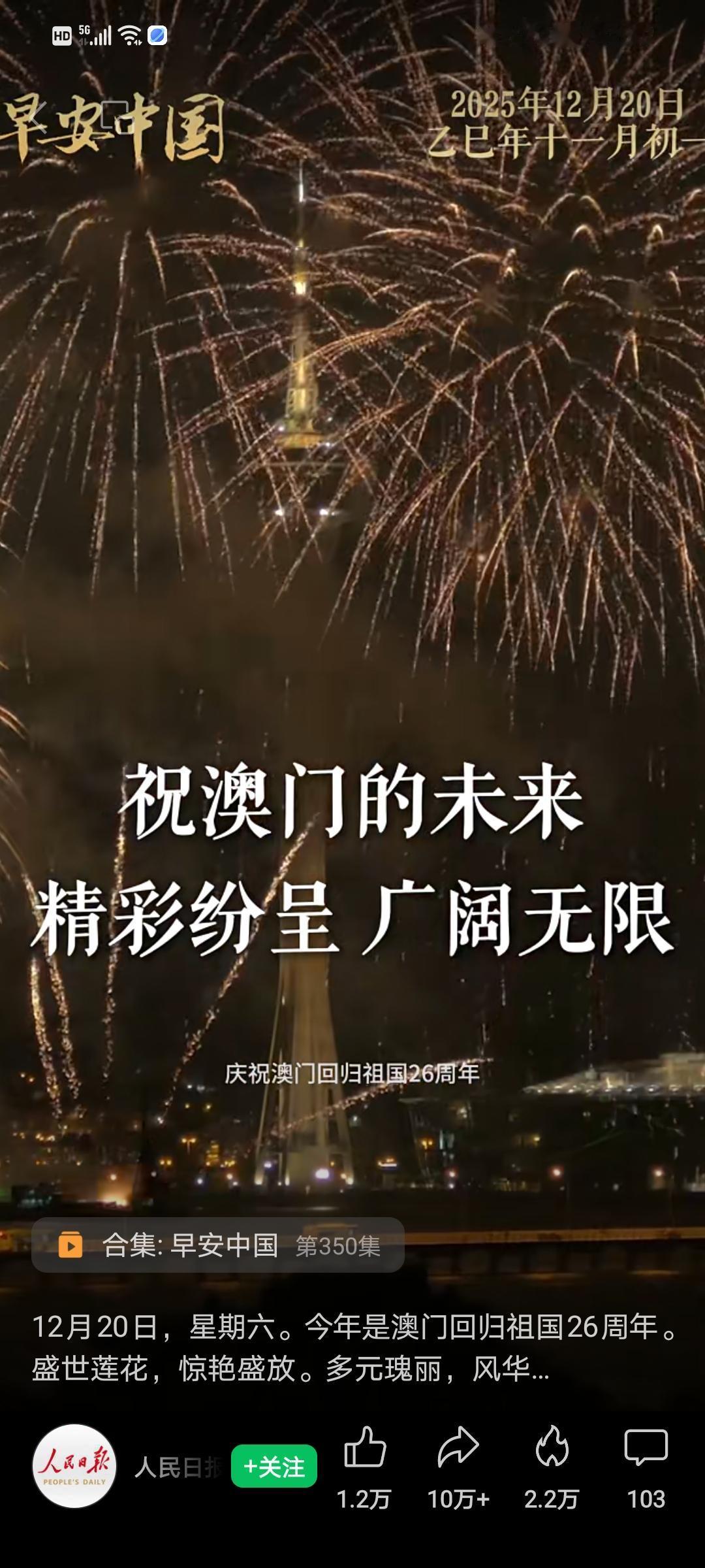 2025年12月20日,澳门回归祖国26周年。“盛世莲花,惊艳盛放”,祝福澳门🇲🇴祝福祖国🇨🇳! 1999年12月20日,澳门回到祖国母亲的怀抱,期待未来的某一天,台湾也回到祖国母亲的怀抱,祖国早日实现统一大业!