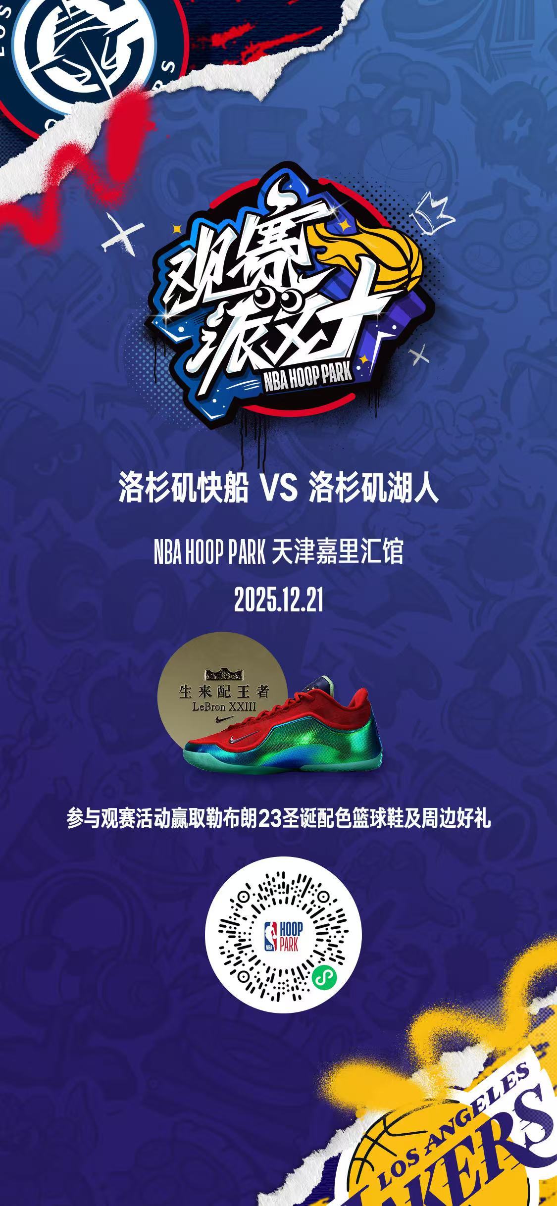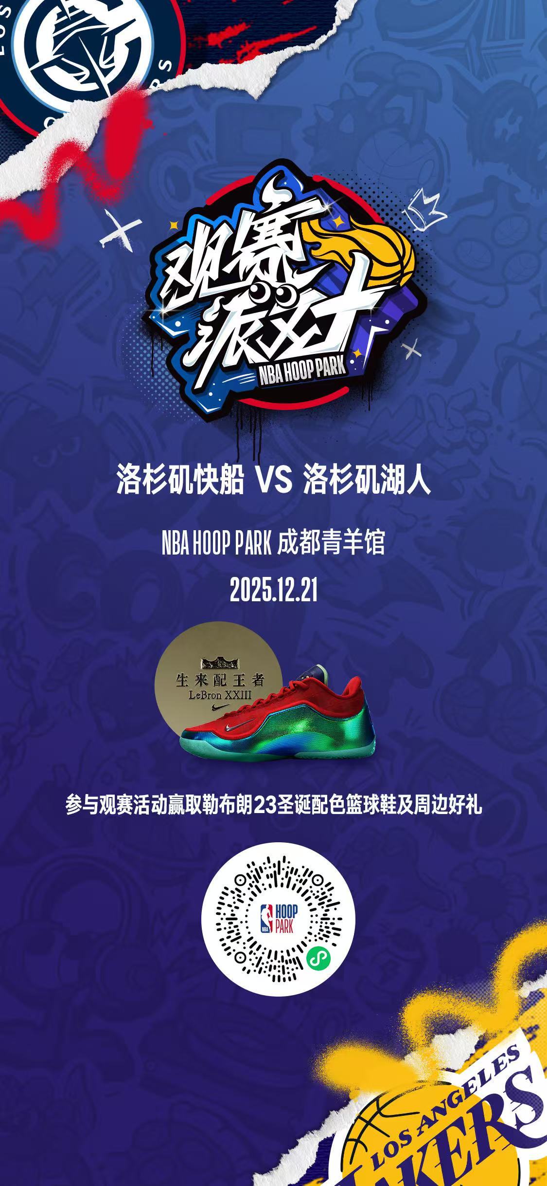 xdm,明天11点半,湖人快船洛城德比,有5个城市的线下观赛派对,深圳、成都、天津、佛山、银川。免费参与,每个城市都会免费抽取勒布朗23代圣诞配色战靴和NBA限定周边!!!