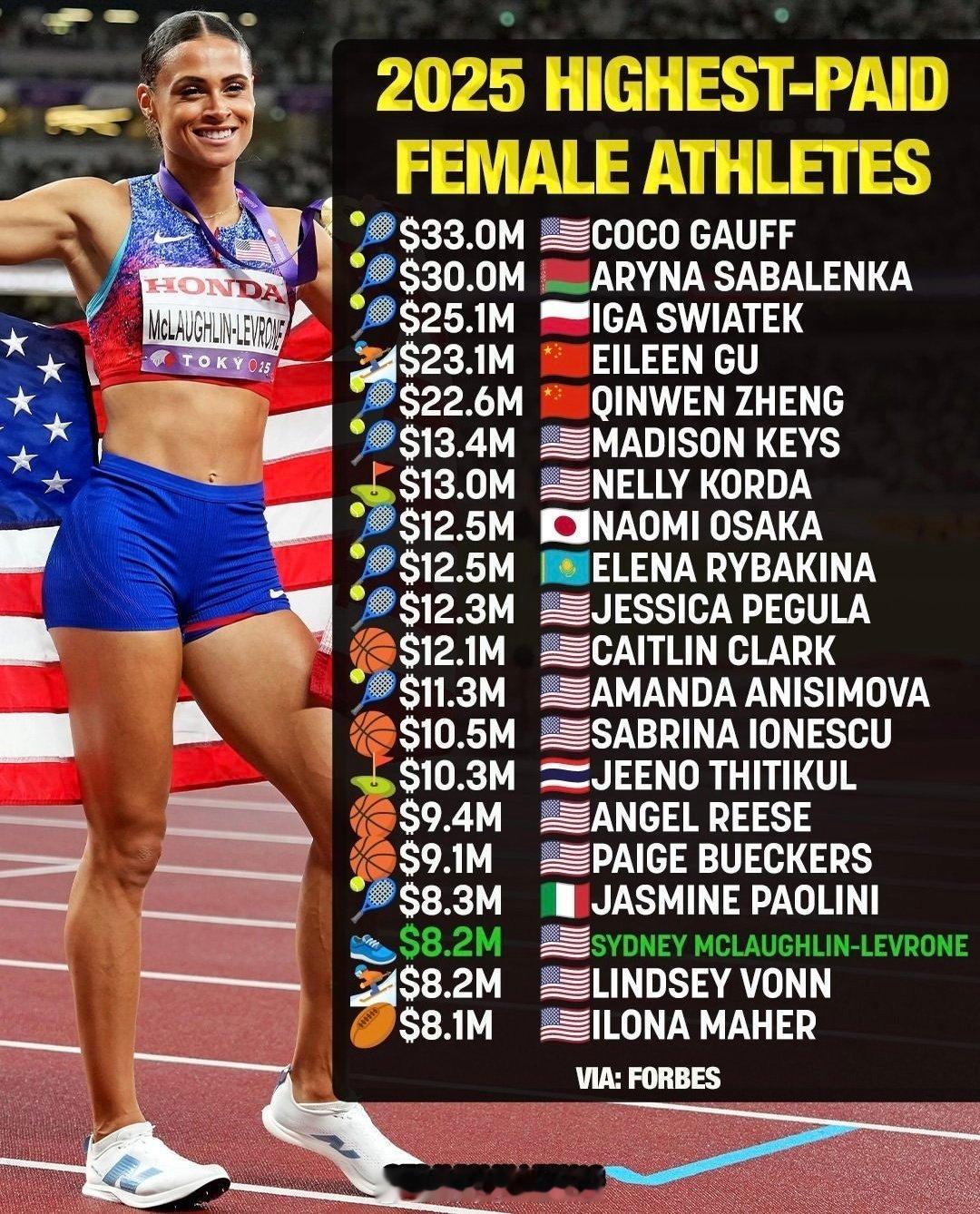 福布斯2025女子运动员收入排行榜排名最高的田径 运动员是🇺🇸麦克劳克林,第18位,两位中国运动员入围前五名。田径说一哈你不知道的田径故事