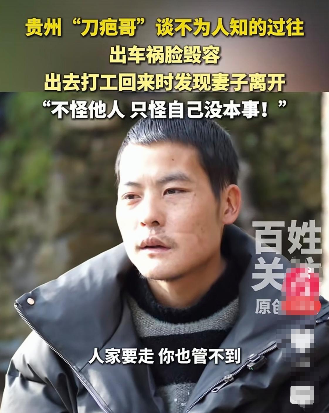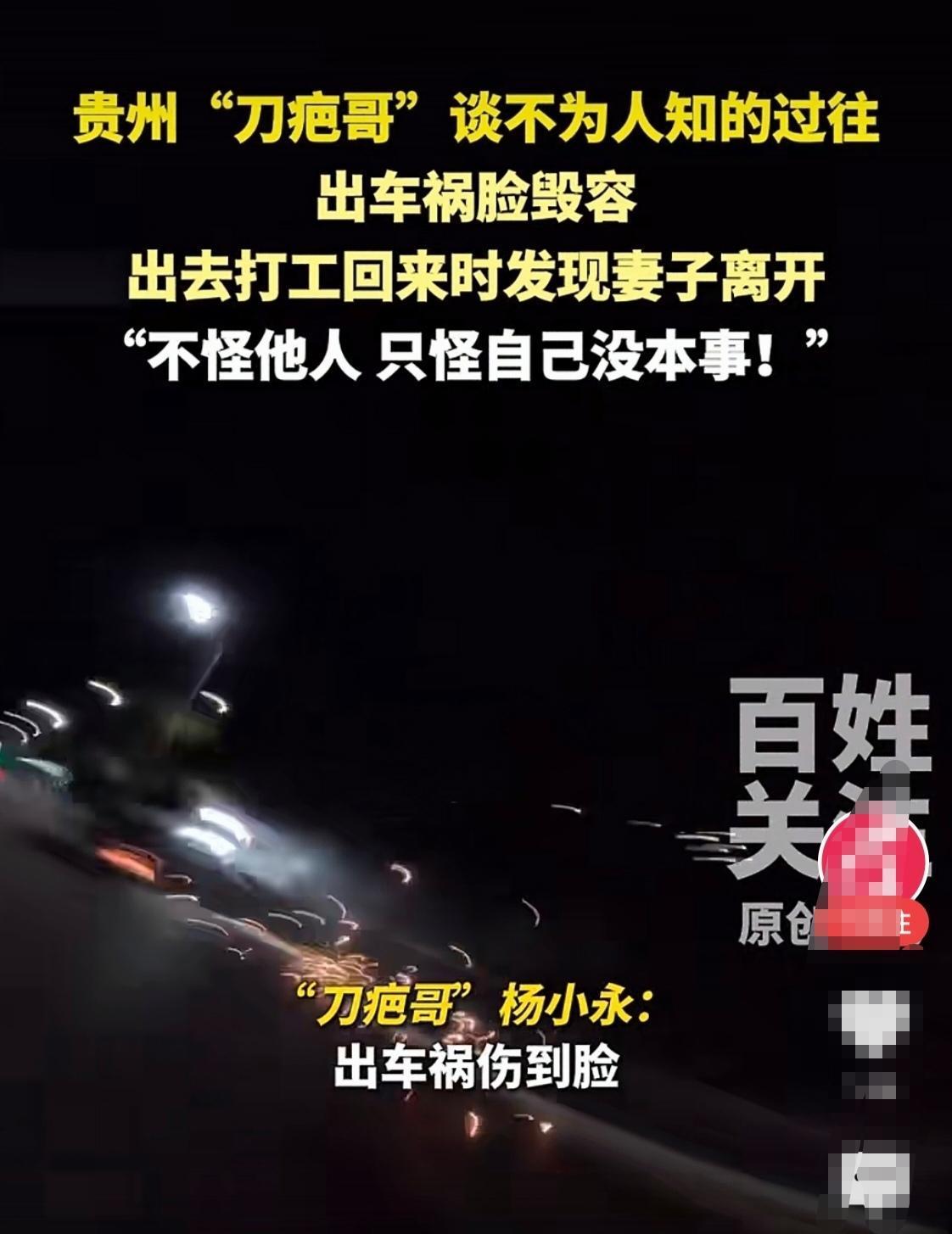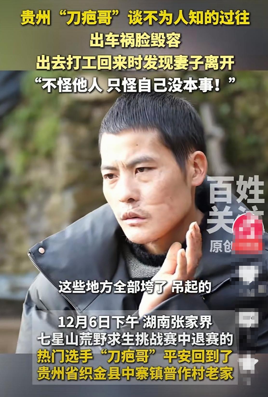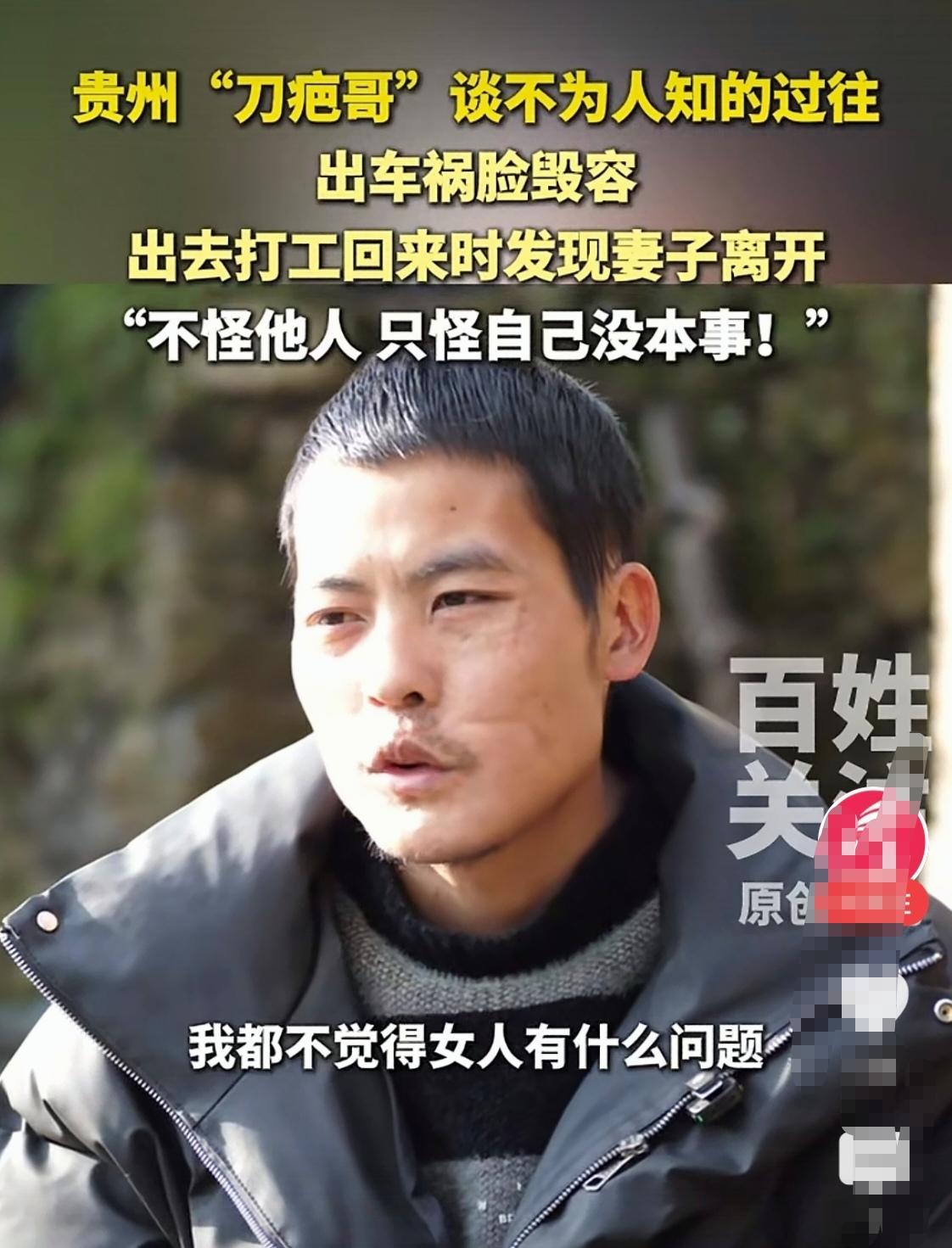 刀疤哥的底色就是善良,越了解刀疤哥越感受到刀疤哥这个男人的朴素与纯粹,像一条未被污染过的小溪,溪水清澈见底。刀疤哥未受伤之前也是一个小帅哥。 一场车祸将刀疤带到了刀疤哥的脸上, 为止他在人世间沉默了十年, 因为自卑了十年。 妻子早就在他出去打工的时候,跑路了。 刀疤哥从来不怪女人的离家出走,他能体谅是他的无能为力没有本事,养不起女人,女人走了反倒是正常的。不觉得女人有什么问题。人家要走,自己也管不到。 听听, 这个刀疤哥的平淡真情流露的话,是那样的简单朴素。 现在风水轮流转,时代变了,老天爷给刀疤哥安排了一个人生的新剧本,就是旅途中把钱赚,说句话也把钱赚。