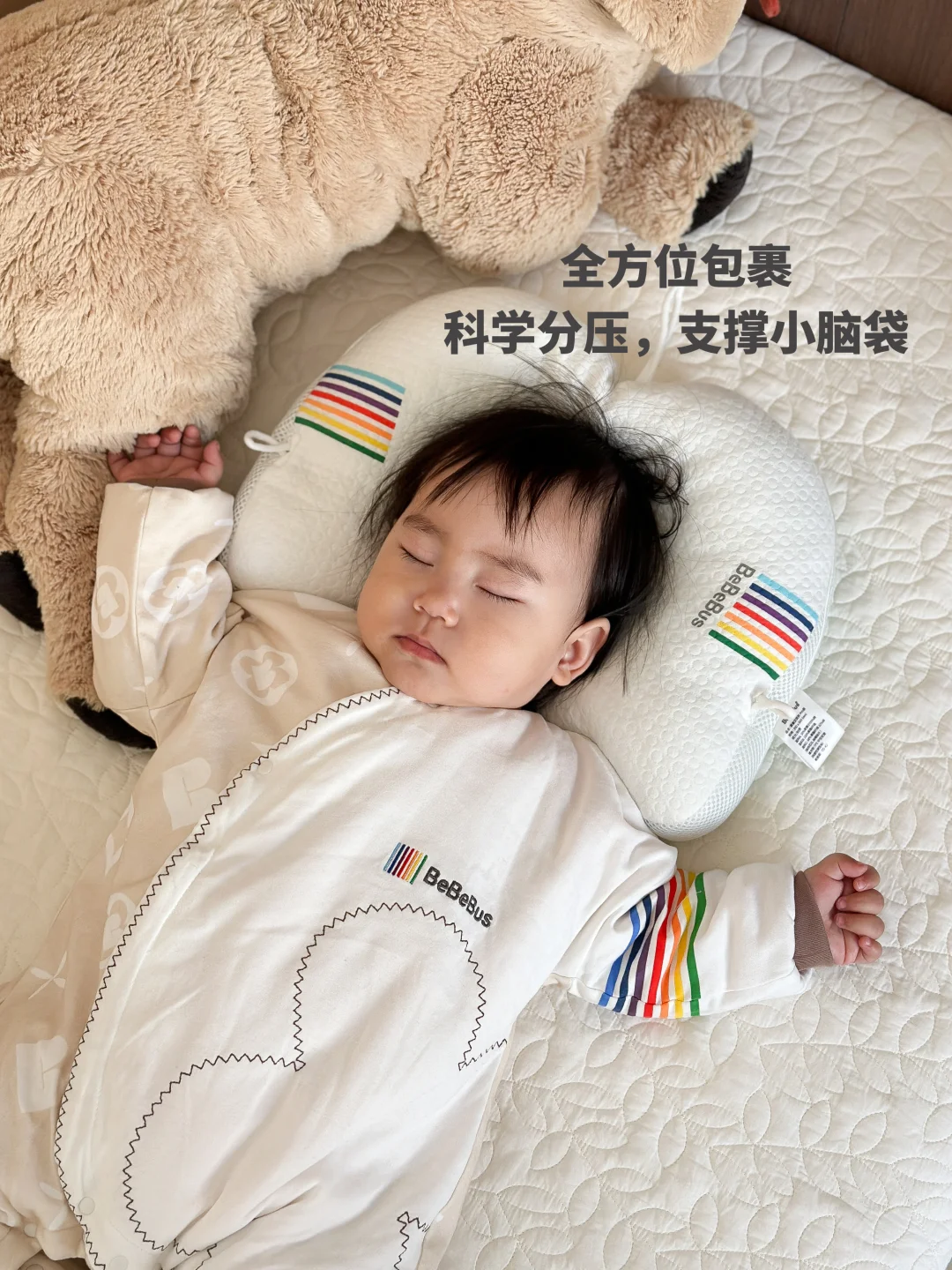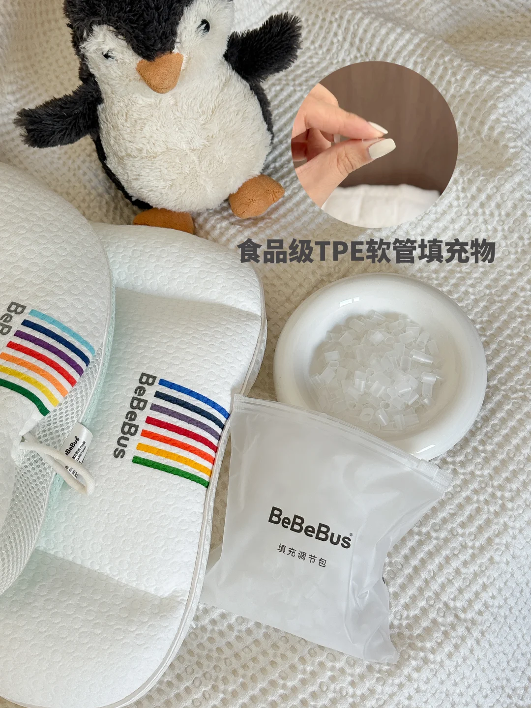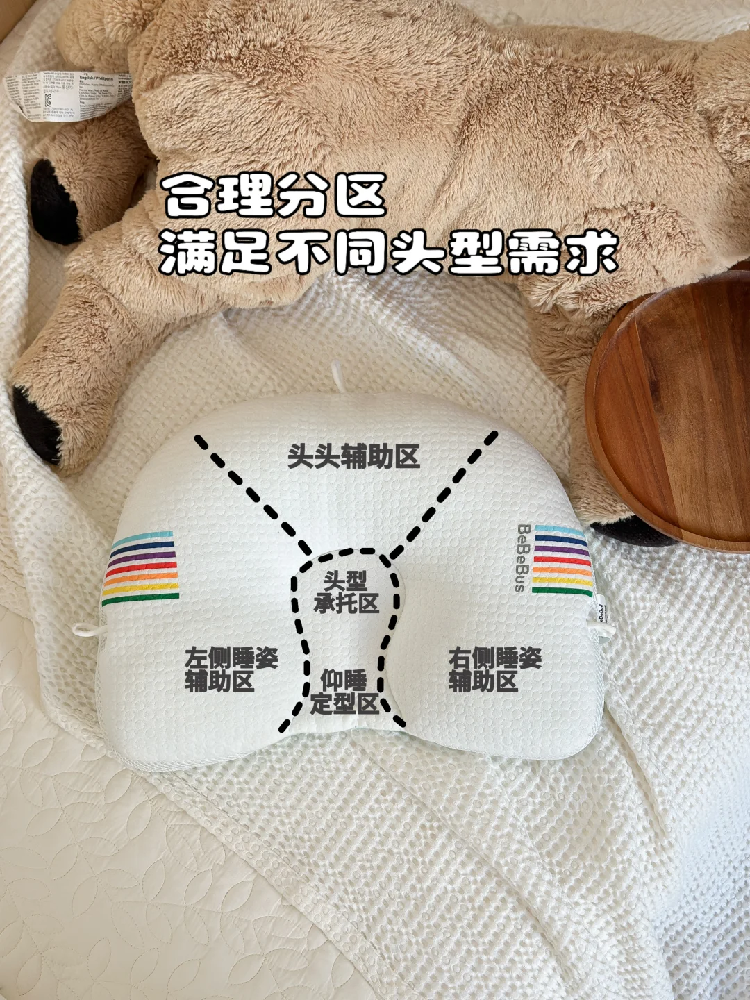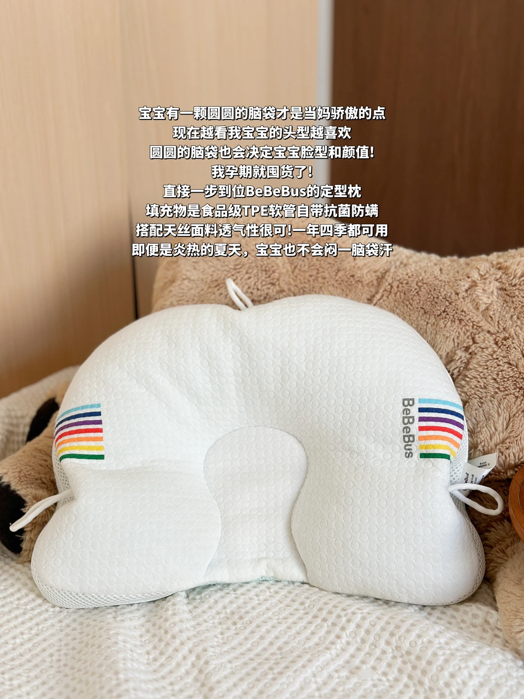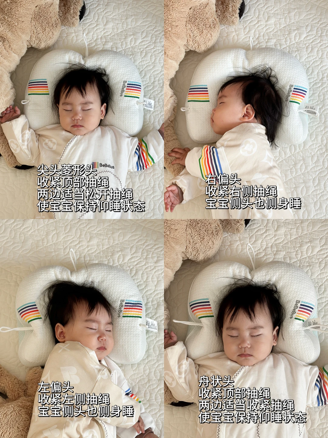 选对正确的定型枕去给宝宝睡,我们从出了月子就开始用BeBeBus家的定型枕啦,三根抽绳就能调整,操作很简单,,填充的是食品级的TPE软管,可以很好的托住宝宝的头型,稳稳的受力,睡觉爱乱动的宝宝也包裹的很好,0.5cm的高度,小月龄的宝宝也可以