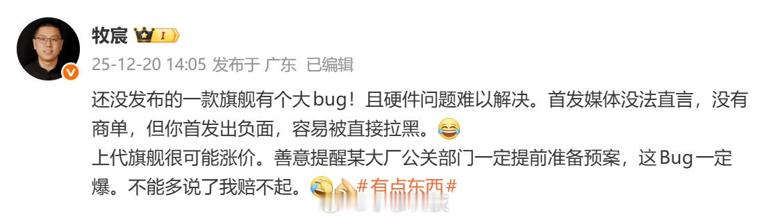 大V爆料还没发布的一款旗舰有大bug,是硬件问题,无法OTA,让我想到了蓝厂X200的那个