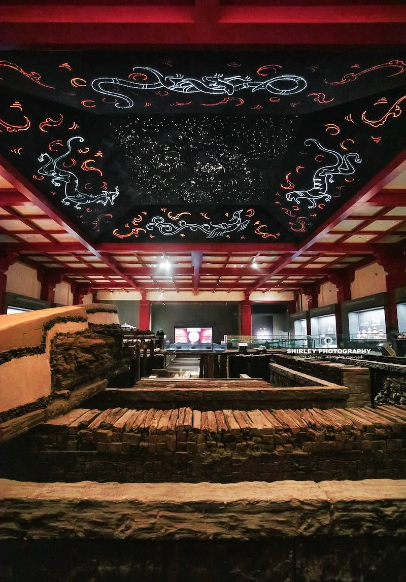 🌈上方的巨大星空藻井象征天人合一,瞬间将人带回到2000年前的神秘时空。整个墓室部分奢华程度不言而喻,视觉冲击力极强,从整体到细节处处是汉代厚葬之风的直观体现。