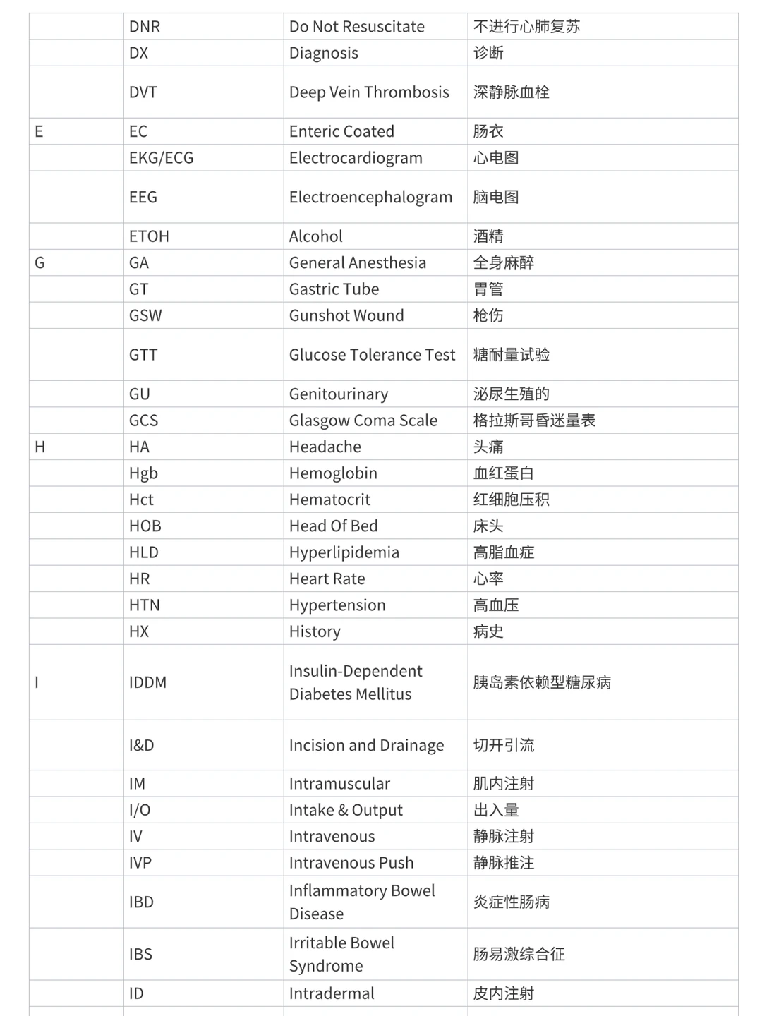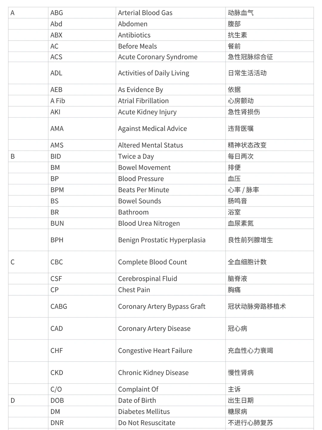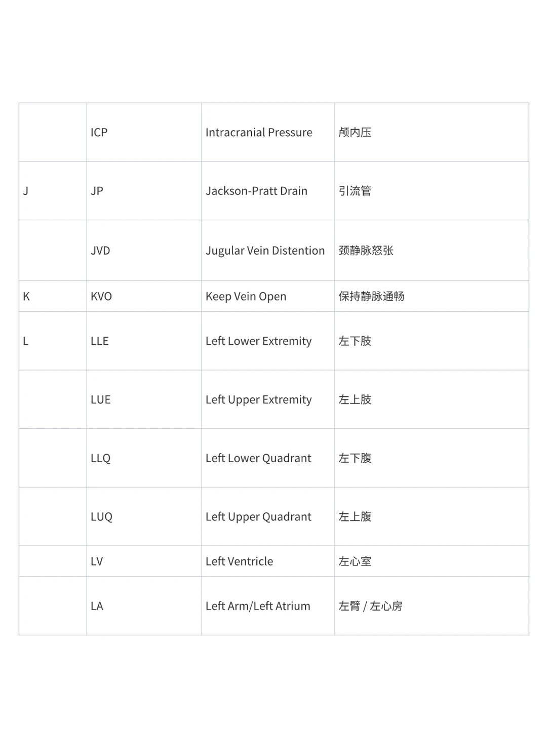 今日份分享学习关于首字母排序的 护理缩写内容 中文英文+缩写 后面有三页 仅供参考学习 医学术语 护理英语 RN和HKRN