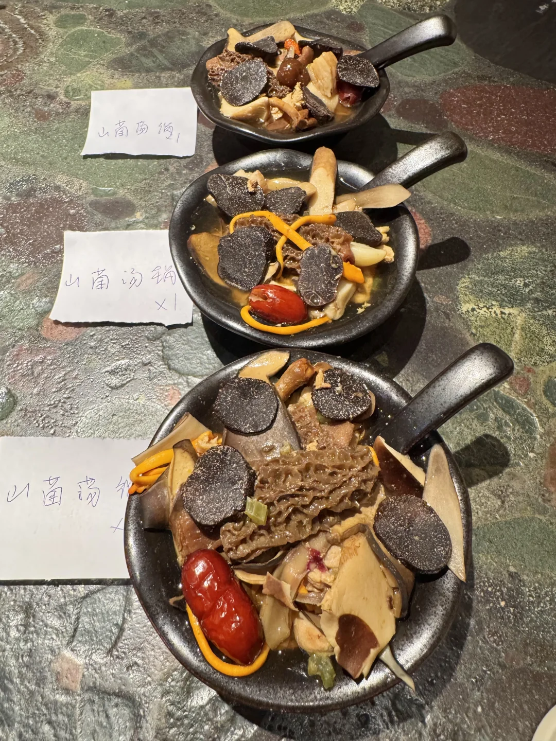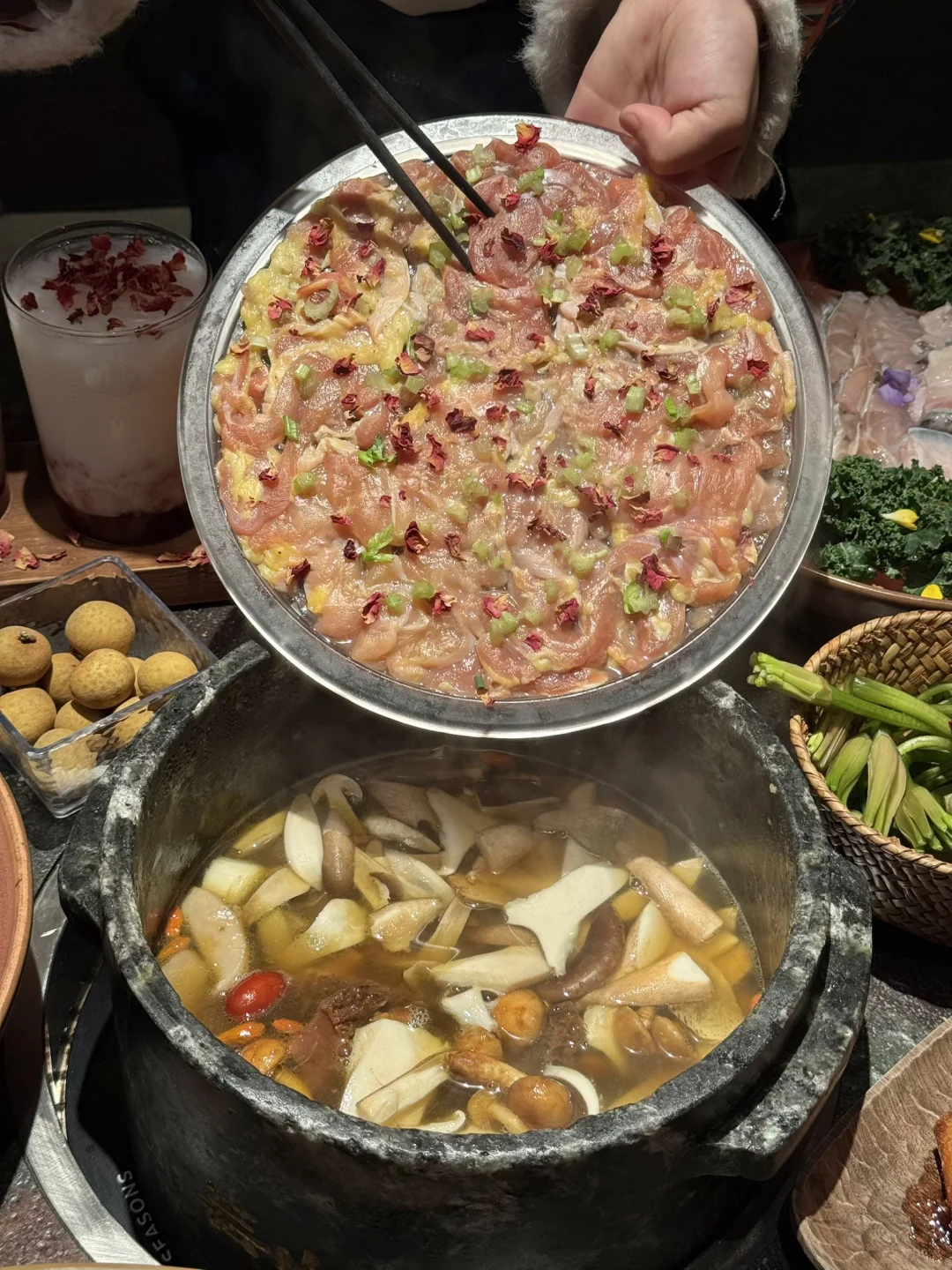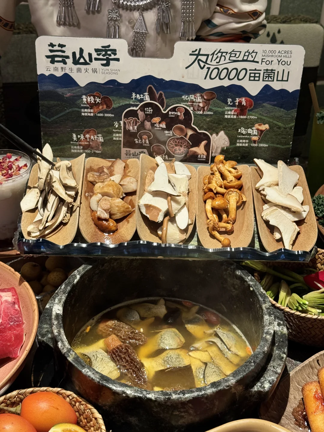 杭州我唯一想推荐的野生菌云南火锅🤤冬天无法拒绝的一碗!! 见手青、竹荪皇后…野生菌汤底一口冲上头的鲜味!!空口喝都连炫好几碗!! 暖乎乎的米布…糯叽叽的!奶香好浓郁… 奶白酒🍶好特别的口感,很醇香的味道~ 傣味手握树番茄竹燕窝甘露🤤又甜又多汁,每一口都能吃到芒果、树番茄的香味,好吃得惊为天人 再配着点牛肝菌焖饭啥的,还有各种漂亮水…清爽好喝!随随便便满意离!!
