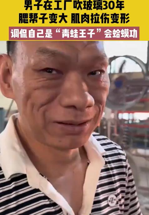 这个真笑不出来!广东一男子在工厂干活干了30年,因为常年都要吹玻璃,导致两个腮帮子变大,只要一吹气,两边就会鼓起来,连他自己都调侃是“青蛙王子”会蛤蟆功。网友:30年练就蛤蟆功,这才是真工匠精神! 广东某玻璃制品厂车间,46岁的李师傅站在1300多摄氏度的熔炉前,深吸一口气,腮帮子瞬间鼓成两个圆球,这已是他每天重复5000次的动作。 而就在前一天,他因这独特的“青蛙脸”意外走红网络。 工友打趣道:“李师傅,你这‘蛤蟆功’现在全国出名啦!” 而李师傅嘿嘿一笑,继续对着吹管吹气。 这30年来,他的脸部肌肉因长期高强度吹气变形,却练就了连自动化生产线都难以企及的精准手艺。 李师傅的日常,是从清晨5点开始的。 他手持一米多长的空心铁管,从熔炉中挑出橙红色的玻璃料液。 那室内温度计显示:45摄氏度。“ 那这还算凉快的,夏天能飙到50度。”他抹了把汗,迅速将铁管送到嘴边。 “呼——”随着一股气流持续注入,通红的玻璃液如同被施了魔法,慢慢膨胀成葫芦状。 而且整个过程必须在3到5秒内完成,因为玻璃冷却速度极快。 “气大了会吹炸,气小了形状就歪。”李师傅说这话时,下意识揉了揉略显变形的脸颊。 30年来,他每天重复这个动作5000次,累计吹气超过4500万次。 而车间墙角摞着的冰敷面罩和肌肉舒缓贴,是他近两年才配上的“新装备”。 但是谁能想到,这位被网友称为“青蛙王子”的师傅,他年轻时也曾是个脸型周正的清秀小伙。 “刚入行那会儿,吹一天就头晕眼花,嘴巴肿得连饭都吃不下。” 李师傅翻出手机里一张泛黄的照片:二十岁的他站在作坊门口,脸颊还是流畅的弧线。 变化发生在第五年。 那天洗脸时,他突然发现自己的腮帮子比常人宽了一大圈。 当时医生诊断说,这是长期重复鼓腮导致面部肌肉纤维过度牵拉,属于职业性损伤。 “当时心里咯噔一下,谁不爱美呢?” 他坦言曾想过转行,但看着自己吹制的第一个完美花瓶,终究舍不得放手。 而如今,他吹制的玻璃杯壁厚能控制在0.3到0.5毫米之间,误差不超过0.2毫米。 可以说他的嘴巴就是尺子,要多大就能吹多大,嗷嗷精准。 如果说变形的脸颊是李师傅的“职业勋章”,那么他布满老茧的双手就是最精密的仪器。 “刚开始学,手指经常被烫起泡。” 但正是这双粗糙的手,能精准感知0.1毫米的粗细差异,而这是机器做不到的。 有次,厂里引进自动化生产线,要求老师傅们配合调试。 当时机械臂吹制的第一个玻璃杯,数据检测完全合格,但李师傅摸了一下就摇头:“厚度不均,容易开裂。” 结果应力测试果然验证了他的判断。 “机器吹的是标准,我们吹的是‘气活’。” 而他说的“气活”,是指工匠通过呼吸控制的手感。 这种需要数十年沉淀的技艺,正是人工吹玻璃不可替代的价值。 “现在年轻人都不愿意学这个喽。”李师傅叹了口气。 他也曾带过的几个徒弟,有三个干了不到两年就转行,理由出奇一致:又热又累,工资也不算高。 这与73岁的非遗竹编传承人田先敏的遭遇如出一辙。 这位做了58年竹编的老匠人也曾感叹:“传统手艺易学难精,愿意来做竹编的年轻人越来越少。” 在如今这个高消费的社会,也只有先吃饱才能学习这些这个就是现实。 但李师傅还是想再试试。 他最得意的作品是五年前吹制的一套酒具,12个杯子大小一致,厚薄均匀。 客户专门回来道谢时说的话,他至今记得:“李师傅,这杯子有温度。” “啥叫温度?”他自问自答,“就是人的气息留在玻璃里的生命力。” 而随着李师傅的故事在网络上发酵,网友们的评论从最初的调侃转向敬佩。 “笑着笑着就哭了,这哪里是蛤蟆功,这是生活的勋章啊!”一条高赞评论写道。 李师傅现在最大的心愿,就是退休前能多带几个靠谱的徒弟。 “不敢说传承千年手艺,至少别让这‘气活’断在我们这代。” 说这话时,他鼓着腮帮子吹完一个花瓶,夕阳透过车间的窗户,给花瓶镀上一层金光。 新一批学员下周就要来厂里实习了。 而李师傅特意多准备了几条毛巾,一条擦汗,一条裹手,还有一条应对烫伤。 他听说学员里有个东北小伙,肺活量很大。 “说不定能练成新一代‘青蛙王子’呢?”工友打趣道。 然而李师傅没接话,只是默默调整了下吹管的角度。 那熔炉里的火光照在他变形的脸颊上,明明灭灭,如同那些正在消失的传统手艺,在工业化浪潮中倔强地闪烁。 也许有一天,手工吹玻璃会成为博物馆里的表演项目。 但李师傅们用青春书写的工匠精神不会消失,那些被高温改变的面容,比任何完美的玻璃器皿都更加璀璨。 主要信源:(广东一男子吹玻璃30年致腮帮变形,调侃自己是“青蛙王子”会蛤蟆功——光明网)