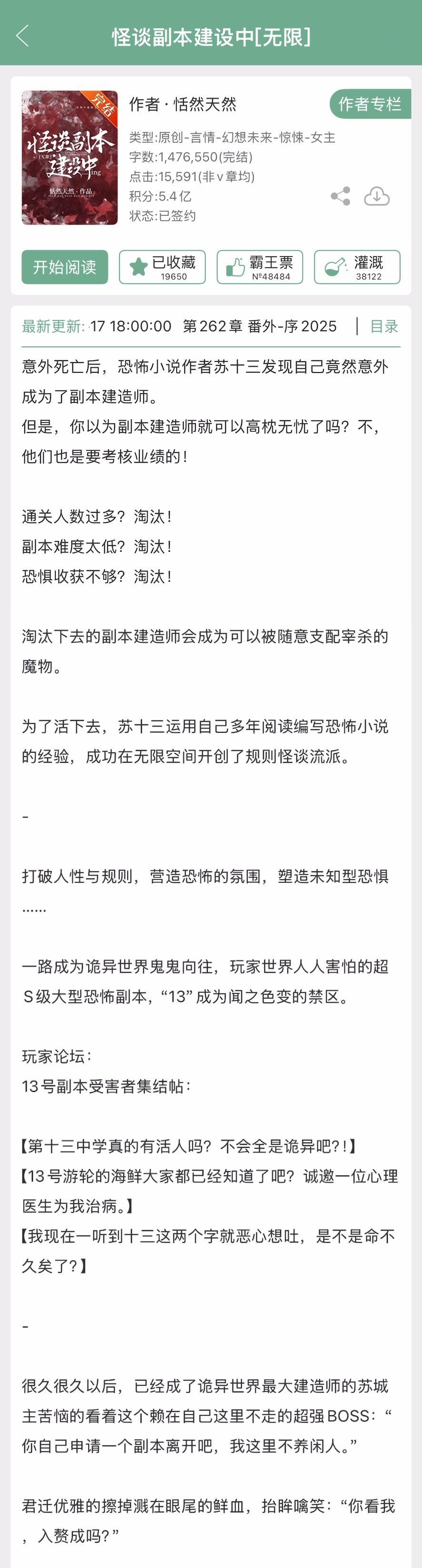 恬然天然的《怪谈副本建设中[无限]》完结啦!规则怪谈类无限流
