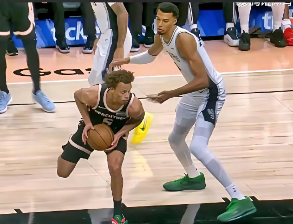 挑战文班亚马,戴森你是怎么想的呀。突破到后转身,以及抛投,这一系列动作都没问题,都运用得挺好的,而且戴森也有意调高了抛投的弧度,想避开文班亚马的封盖,可是,他是文班亚马啊。哪怕被你的转身甩开了半个身位,哪怕比你晚跳很多,哪怕你的抛投足够高了,但依然能把你的球扇飞,让你感到绝望,这就是一寸长一寸强的具象化体现,文班亚马已经连续超过100场有盖帽进账了。今天打老鹰,文班继续替补出战,效率极高,目前打到第四节,他出场了21分钟,已经拿到26+12了,外加两个封盖,马刺已经大比分领先多达35分,后面文班亚马应该不会再上了。