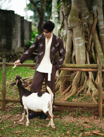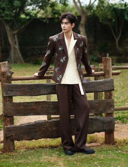 陈星旭的新造型太惊喜!棕色绣花西装优雅又温柔,牧野背景像极了农场慢生活,主理人气质扑面而来,帅得让人沦陷。