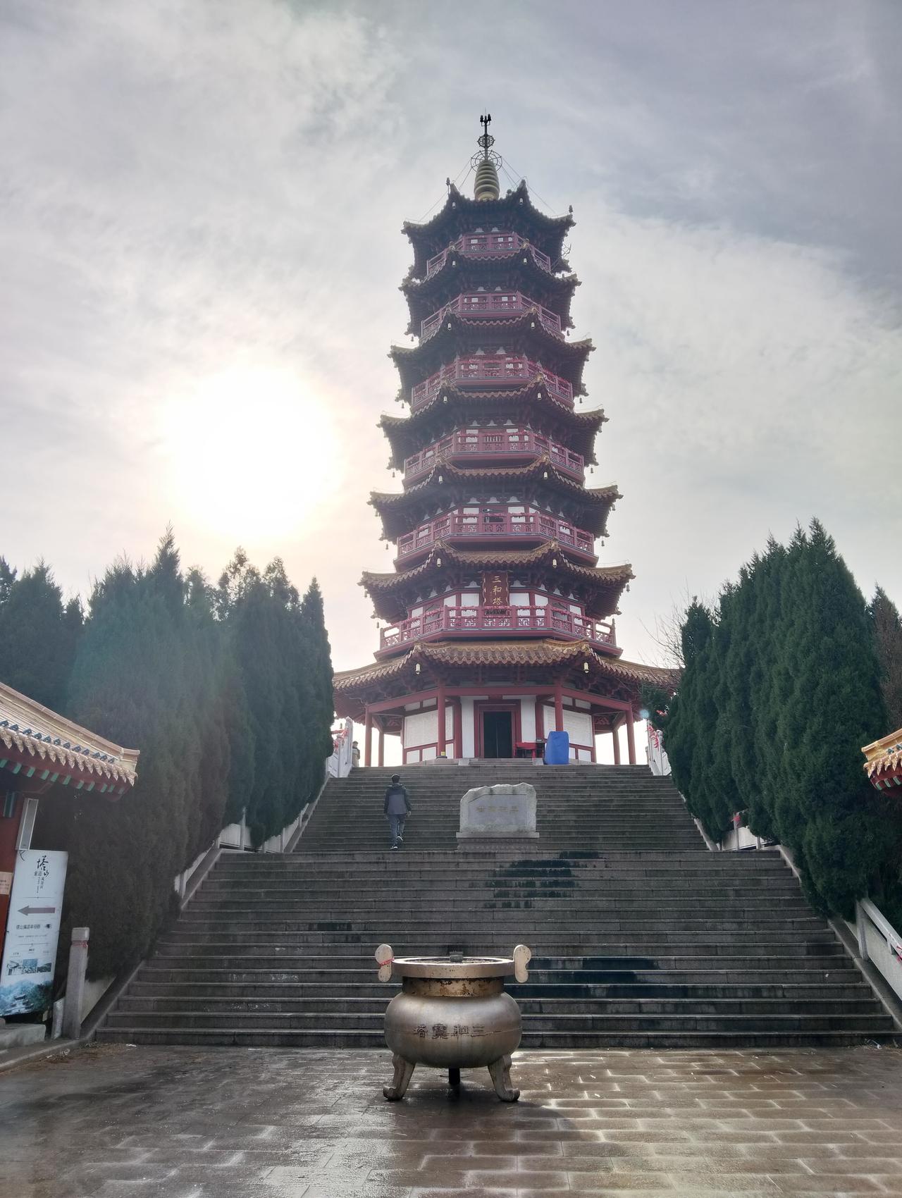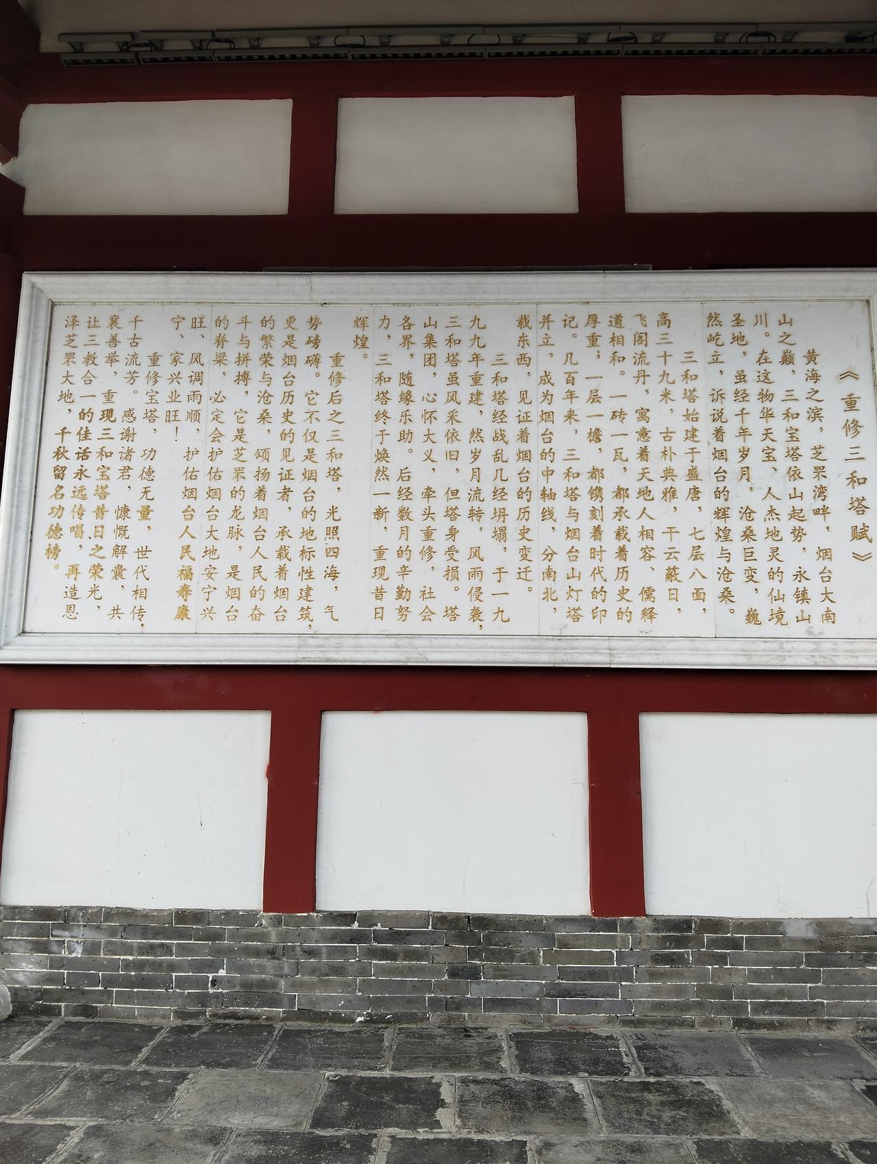 三合塔始建于唐代,屹立烟台千百年,保佑这片土地和人民。古塔不幸,在六十年代破四旧的浪朝中新拆了。这个古迹被毁掉,消息传来,市民非常惋惜。没有了塔的“塔山”还是塔山吗? 塔山集团复建了三合塔,功德无量,合了当地人的心愿。