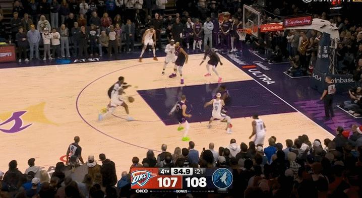 爱德华兹,一断一帽,终结比赛,让不可能变为可能。雷霆vs森林狼