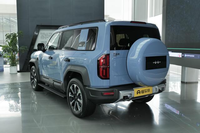 豹5的尺寸还是挺大的,长宽高分别为4890mm、1970mm和1920mm,豹5的轴距为2800mm。侧身腰线从前车轮贯穿至尾部,车身周围使用了哑光黑色的护板包裹,顶部带有行李架。尾部使用了竖状尾灯很是精致,高位刹车灯的设计用于更好的警示后车,背负式的备用轮胎很有气势,整车传递出一种不可阻挡的力量感。