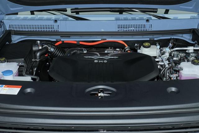 动力方面,豹5搭载了专为越野设计的纵置1.5T高功率发动机与前后双电机组成的四驱系统。发动机最大功率可达143kW(194Ps)、峰值扭矩为273N·m;而电机综合功率达485kW(660Ps)、峰值扭矩达到760N·m。在E-CVT无级变速箱的加持,豹5仅需4.8秒即可完成百公里加速,对于这样一款接近3吨重且采用方盒子造型的车型而言,其动力表现的确比较充沛。此外,豹5还搭载了比亚迪标志性的刀片电池组,电池容量为31.8kWh,CLTC工况下纯电续航里程可达125km,综合续航里程达1200km。