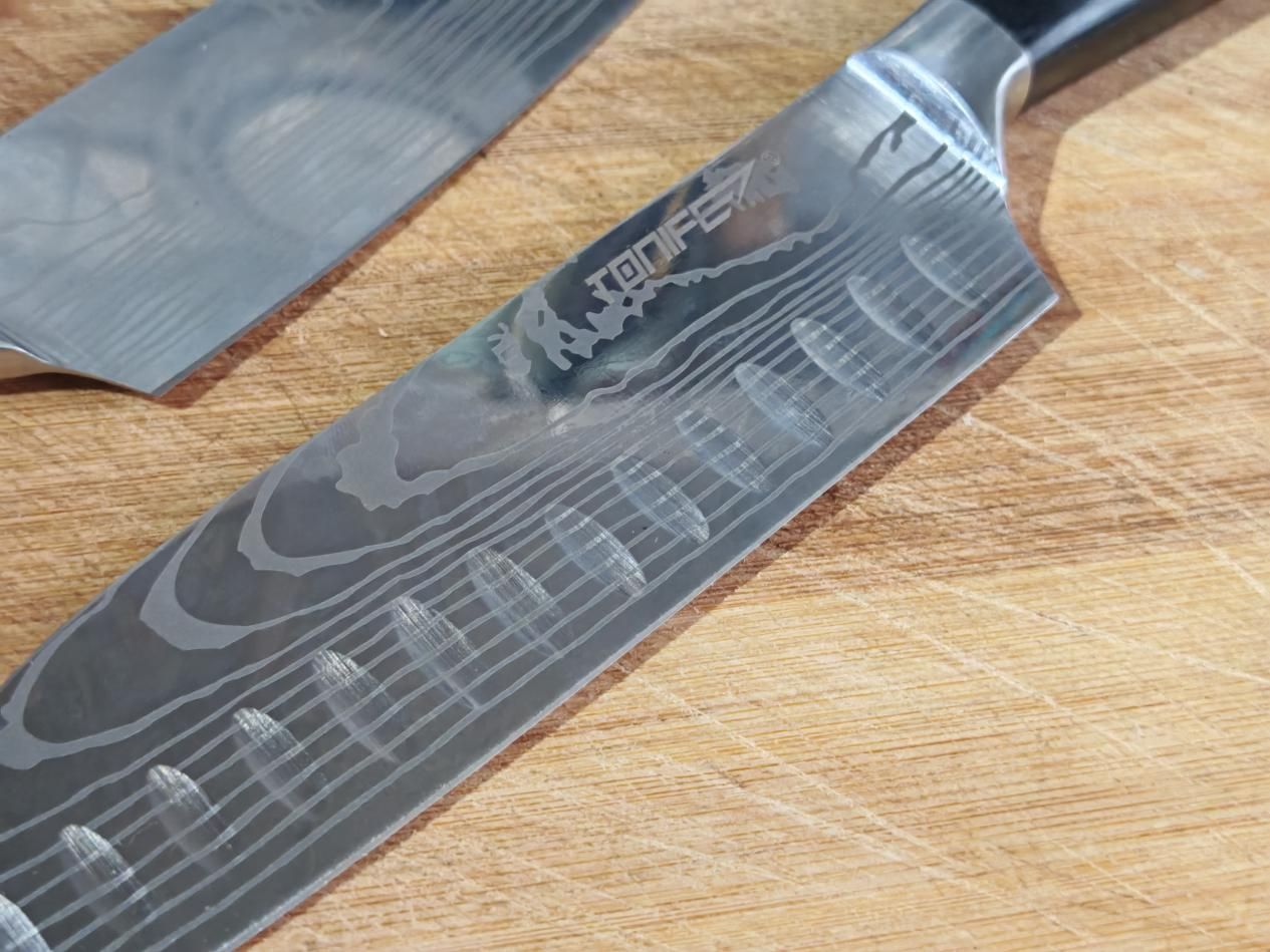 在实际使用中,TONIFE途耐KK5002厨房套刀的表现非常出色。主厨刀切割肉类、鱼类和蔬菜都非常轻松,刀刃锋利,切割流畅。三德刀则更适合处理各种中小食材,刀刃上的防粘凹槽设计有效减少了食材粘刀的问题,让切削更为流畅。多用小刀则适合处理细小食材,如削皮、剔果蒂等,非常高效、轻松。