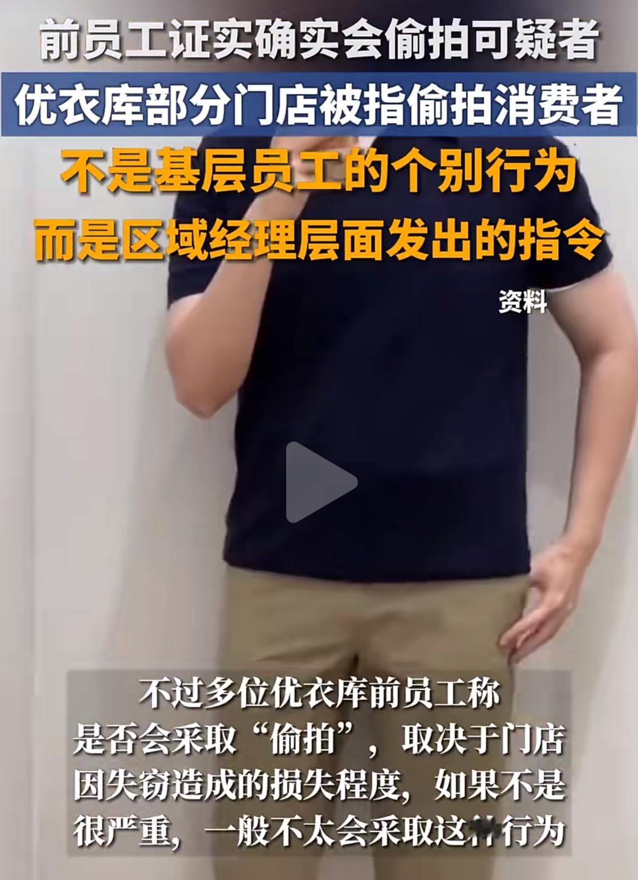 更离谱的是,这根本不是个别店员的瞎折腾,而是区域管理层下的指令!员工偷偷抓拍顾客背影、从监控里截正脸,用红框标出来,再发到几百人的内部群里共享,还管被拍的人叫“11号”。戴个口罩、背个大包,甚至只是多翻了几件衣服,都可能被盯上,连常客都能被平白无故误判。 消费者陈先生进四家门店都被迅速认出来,鞠女士因为之前处理过防盗扣问题,再进店就被保安全程跟着——换谁遇上这事儿不觉得膈应?优衣库嘴上喊着“顾客立场”,实际却用偷拍这种下作手段防贼,品牌理念和所作所为简直差了十万八千里。 律师早就说了,这种行为涉嫌违法,既侵犯肖像权也侵犯隐私权,可优衣库的内部投诉热线根本不管用。网友们也想起了当年的试衣间偷拍旧案,越来越多人质疑:品牌防盗难道非要以牺牲消费者的尊严为代价? 防盗确实有必要,但不能没底线。把顾客当贼防的品牌,真的能留住人心吗?你有没有过在商场被过度盯防的不舒服经历?优衣库部分门店被指偷拍消费者 优衣库偷拍嫌疑人被行拘10日 偷拍