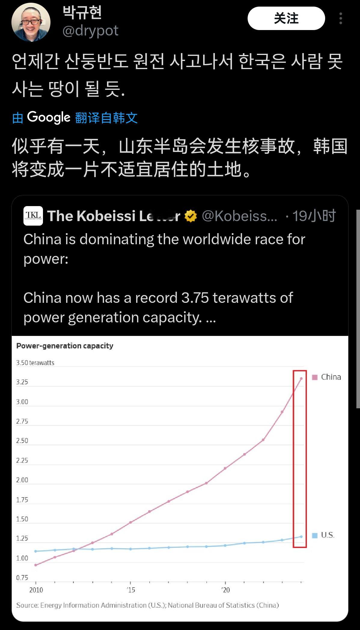 美国人讨论中国发电量是美国3倍,韩国人又来刷存在了!中国发电量是3.75太瓦